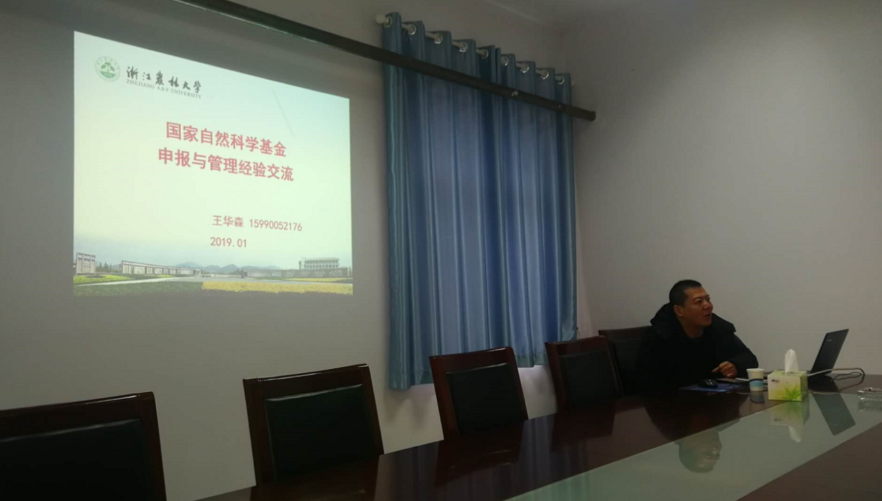 2019年1月5日下午,浙江农林大学科技处副处长王华森教授应邀为我院教师作“国家自然科学基金申报与管理经验交流”的专题报告。王教授首先针对2018年国家自然科学基金申报情况做了详细介绍,主要针对国内主要农林院校国家自然基金申报量、立项数进行了统计分析与比较,并对我校2011年-2018年的申报情况进行了详细解读。其次,结合自己的工作经历与基金申请经验,就教师们如何申报项目时提出了很好的建议,尤其在如何选择申报方向和撰写国家基金申请书写作质量等方面提出建议。最后,王教授指出了2019年国家基金政策的新变化,比如在申报青年基金时不再列出其他参与者、代表论著最多列5篇和无纸化申请等,并建议老师们在申报项目与网上申请时留意相关的变化。