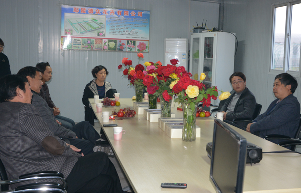 一路上,只见无穷无尽、各式各样、高矮不一、颜色各异的苗木林立在大路两旁,具说有70多万亩苗圃种植区,是园艺专业学生实习的良好场所;冯院长一行首先参观了鄢陵德众花卉有限公司的花卉培育和生产智能温室,琳琅满目的各色玫瑰以及各色绣球和菊花种植有序,公司总经理丁龙不停的向领导们介绍不同品种的花卉、品种来源、品种特点以及未来发展前景。在座谈会上,冯院长结合该公司发展需要人才支撑、技术提升以及科学管理等现实,对公司品种研发、成果使用、项目申报、科学运作以及深度发展等提出了一些建设性意见和建议,并希望公司将学生的实习与公司的研发项目结合起来,既能做好公司的研发工作,又能达到学生通过实习开阔思路、提高动手能力的目的。