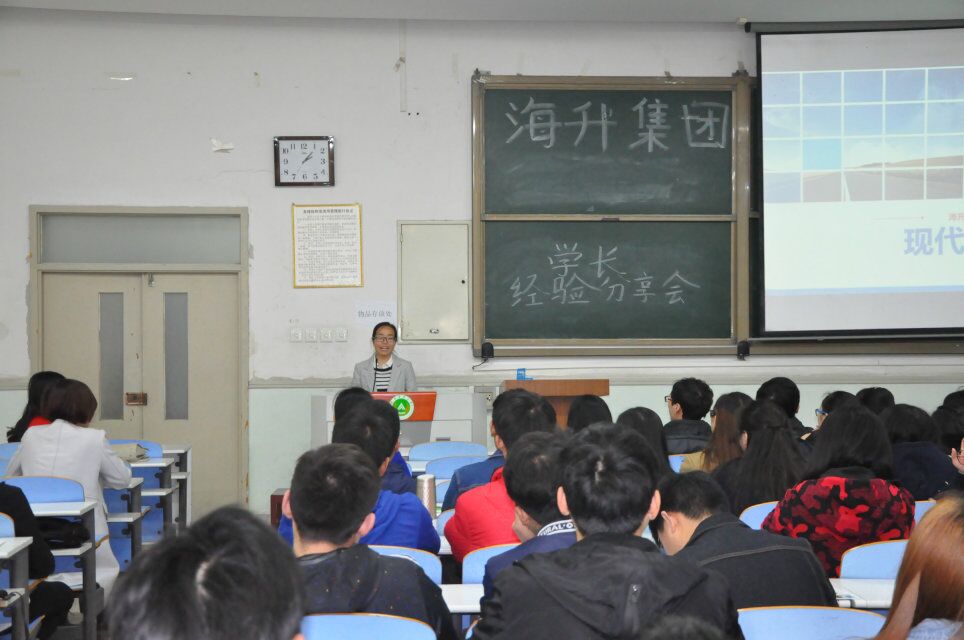 海升集团代表在会上播放了果园打药、起苗、采摘果实等现代农业的相关视频,以此引入海升集团的规模化、标准化、现代化以及产业化。他们指出:农业高新技术是推动现代农业发展的基础和关键。海升集团代表结合PPT向同学们展示灌溉模型与系统以及现代农业的发展前景。与此同时,简单介绍了海升集团机构、技术力量、未来发展规划等,联系自己的大学生活道出了大四学生对工作的迷茫,并讲述了他们招聘的岗位、薪资待遇和晋升通道。