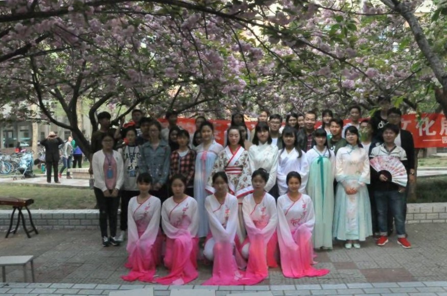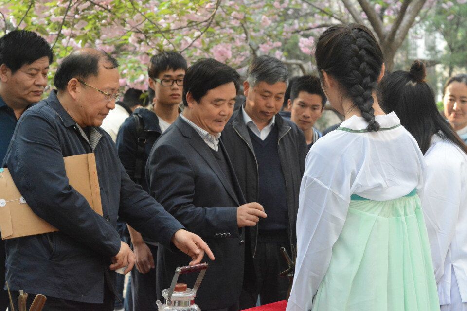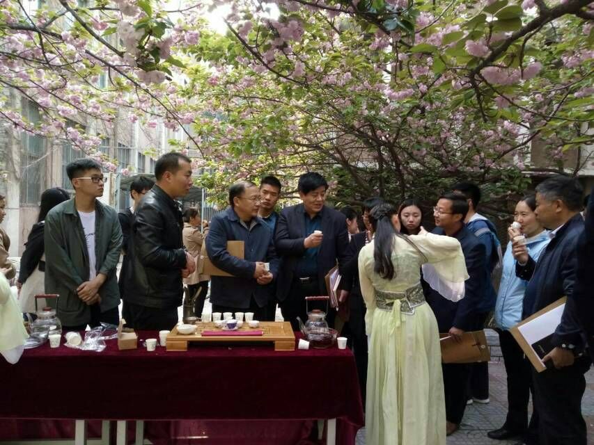 4月7号下午,我院在文化路校区三号楼后樱花小道举办以“樱韵茶迁”为主题的茶文化展示活动。校党委副书记、工会主席褚金海,学工部部长李书民、校团委书记马菲及我院党委书记耿超明、院长冯建灿莅临现场。