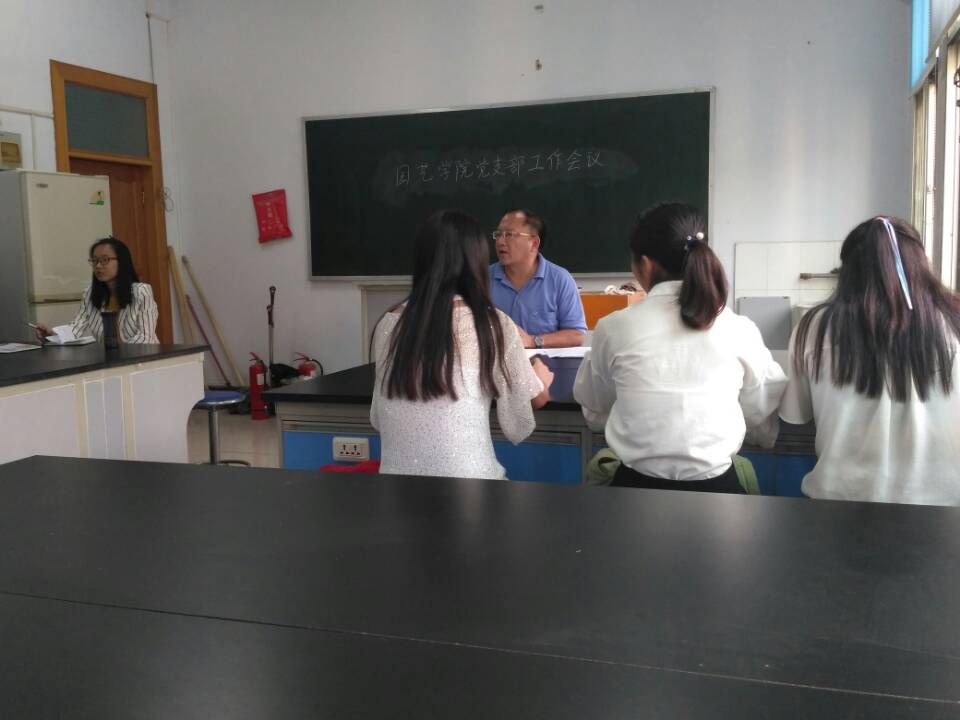 会上,院党委书记耿超明首先向大家简要介绍了开会目的和流程,鼓励各支部委员带领党员发挥好先锋模范作用。接着由组织委员黄婉珺向各支部传达近期需要开展的各项工作,鼓励各支部成员积极参与、踊跃报名。随后,耿书记向各党支部书记、委员讲解了支部工作的各项制度,各支委需要承担的职责,他希望大家在工作中做到“敢担当、能担当、会担当”,继续推进“两学一做”制度化常态化,同时,要紧紧把入党积极分子团结在党的周围,加强培养,共同进步,拒绝支部活动教条化,勇于创新。耿书记强调,大家要充分发挥党支部的战斗堡垒和学生党员的先锋模范作用,要坚守党员立场,做遵纪守法的模范,做合格党员。