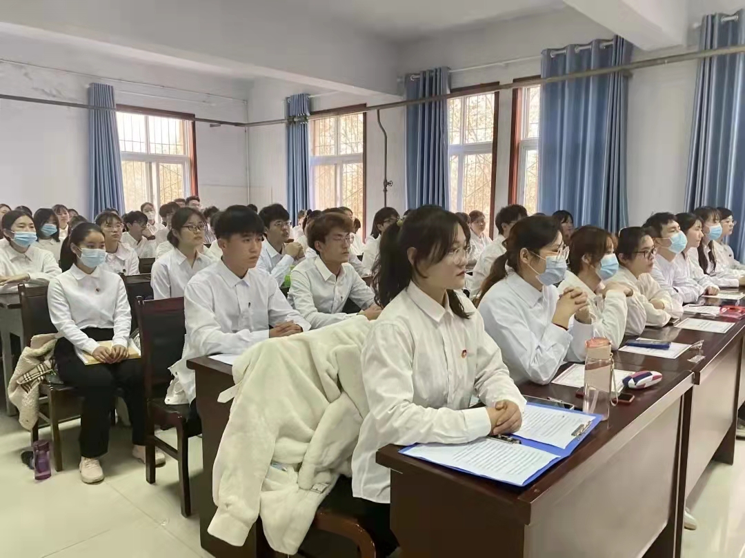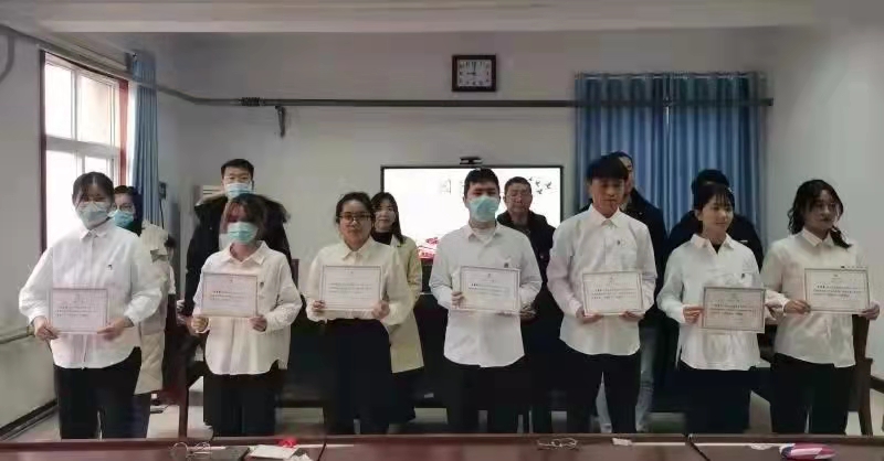 活动伊始,全体起立奏唱《国际歌》,拉开本次仪式序幕。随后,由院党委副书记毛会坡老师宣读《糖心视频 青马班培训第一粒扣子工程第四期培训班优秀学员表彰决定》,全体领导老师为青马班优秀学员颁发荣誉证书以示鼓励。紧接着,全体学员观看了第四期青马班结业视频,对这一年来组织的活动以及课程学习进行了回顾和总结、展示了青马学员获得的各项荣誉与成绩。然后,新老学员代表分别发言,青马班第四期班长石嘉琪和优秀学员代表宋晨晨分别分享了自己一年来在青马班收获与成长,表达了对老师们的感激之情。第五期学员代表杨冰涛作为新学员代表发言,表达了会利用好青马班的平台,学习理论,努力实践,提升思想水平和政治觉悟。最后,由院党委书记杨喜洲对第五期青马班进行授旗并讲话,他对新学员提出了三条期望:希望大家坚定理想信念、希望大家勤奋学习、希望大家争当先锋模范。仪式最后,各位领导老师和全体学生共同合影留念。