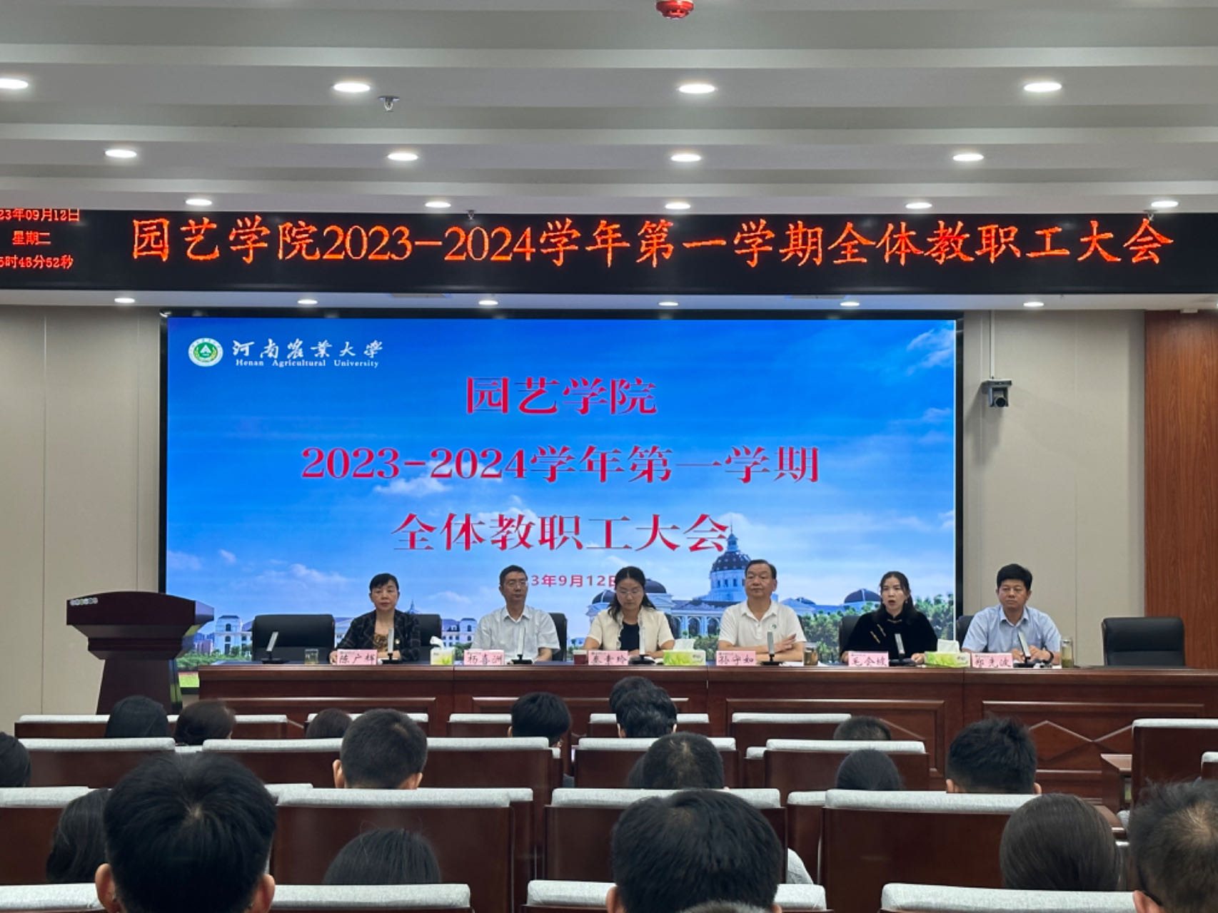 在龙子湖校区北209学术报告厅召开2023-2024学年第一学期全体教职工大会,部署本学期重点工作任务。学院领导班子、全体教职工参加会议。