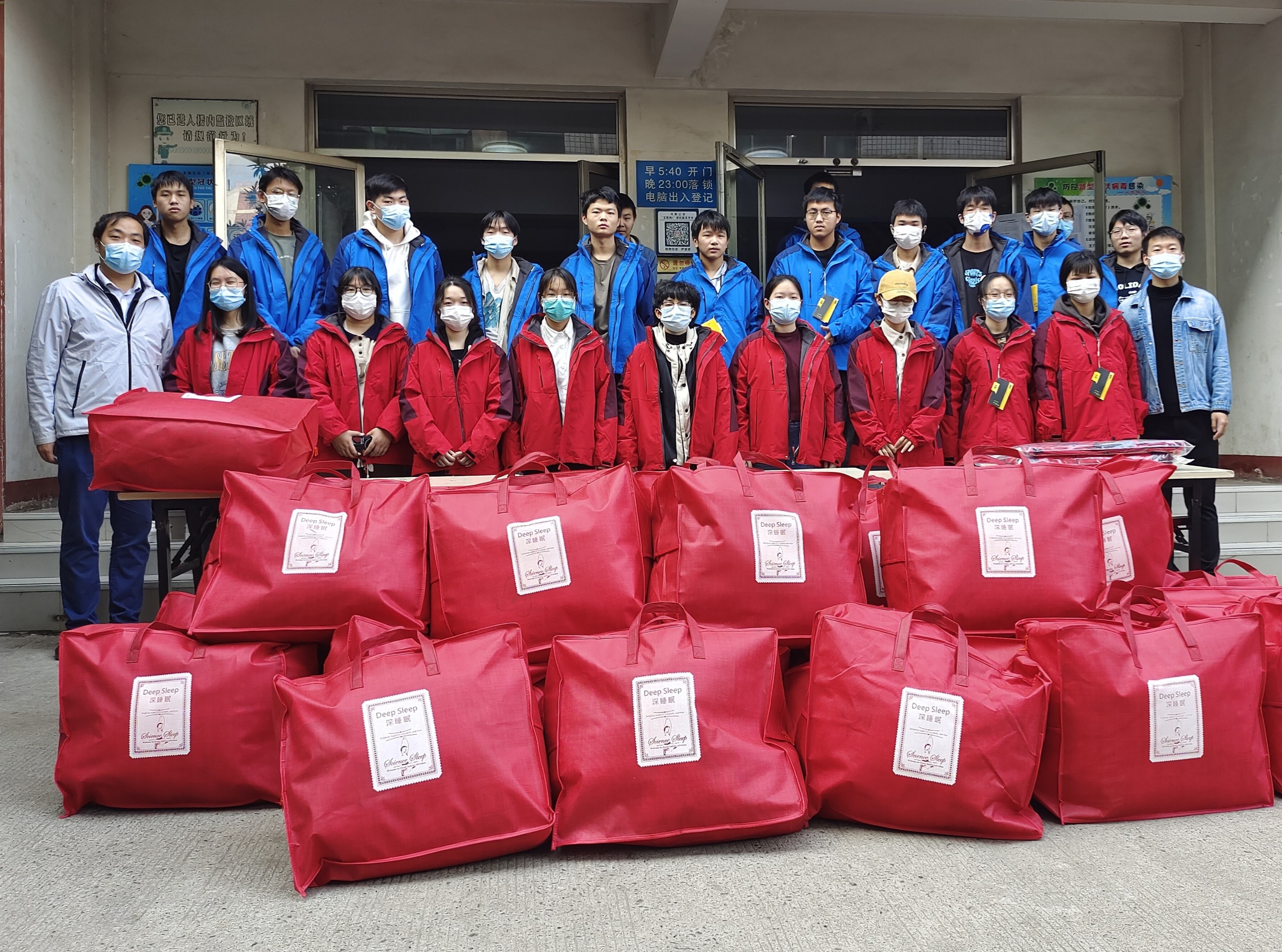 活动期间,院团委书记冯帅和20级辅导员丁坤老师为大家分发了温暖的棉衣和棉被,并亲切地叮嘱大家在现场都试一下衣服合不合适,并询问大家是否需要调换,感受着学院送来的温暖,同学们的脸上都流露出了开心的笑容。随后,冯书记从生活、学习等方面对同学们进行了慰问,并激励同学们即使在疫情期间也要以乐观的心态面对困难,积极配合学院工作,不在生活上马虎、不在学业上放松,老师们的句句关心犹如冬日里的暖阳点亮了大家对美好生活的期待,为他们托起了“稳稳的幸福”。同学们接过棉衣和棉被,纷纷表示非常感谢学院领导老师送来的关爱,让身在他乡的他们在寒冬来临之际也感受到了家的温暖。