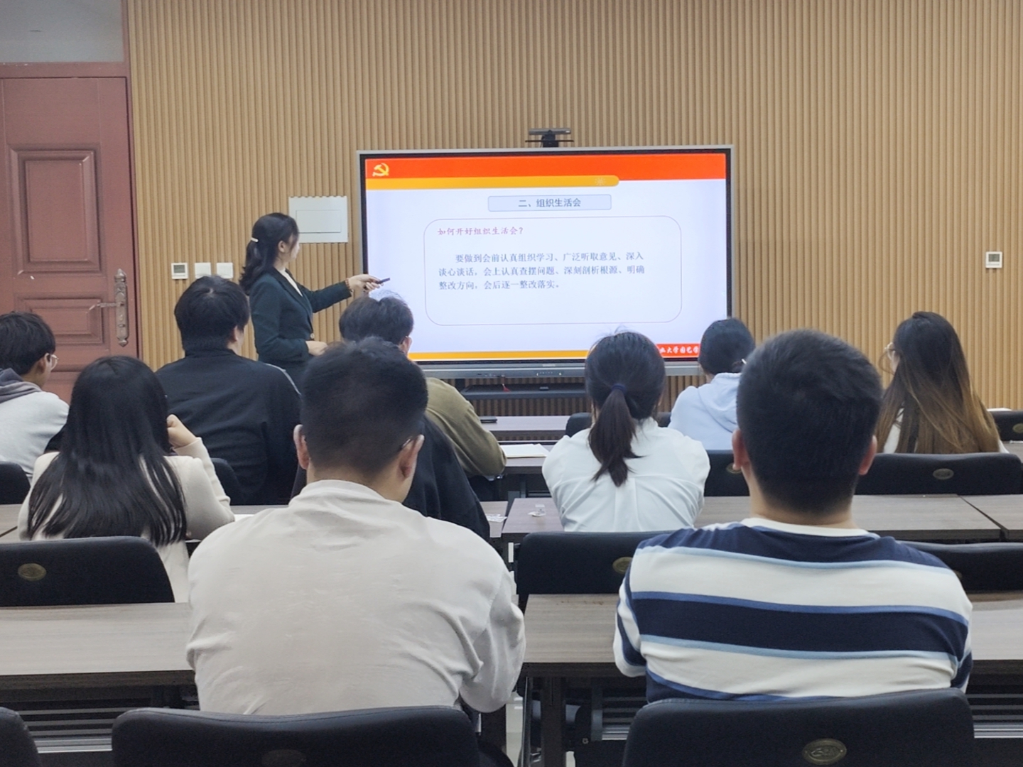 冯帅老师结合中国共产党发展党员工作流程图,从申请入党、入党积极分子的确定和培养教育发展对象的确定和考察、预备党员的接收、预备党员的教育观察和转正,带领大家逐一学习了以上内容。随后,毛书记从党支部组织生活有关规定,发展党员的标准和程序,不合格党员的处置方式和程序三个方面展开,对“三会一课”的内容频次、程序要点等进行了详细解读。会上,毛书记多次强调学生党支部在推优培养、监督管理党员工作中的重要意义,对学生党支部书记的责任感、使命感和奉献意识提出要求,希望各个学生党支部支部书记和委员发挥好党员模范带头作用,扎实做好党员发展和积极分子培养教育工作,在各项工作和学生活动中,发挥党支部的战斗堡垒作用,在今后的学习工作中,要以身作则,时刻以高度的责任感和使命感发挥好党员干部的模范带头作用。
