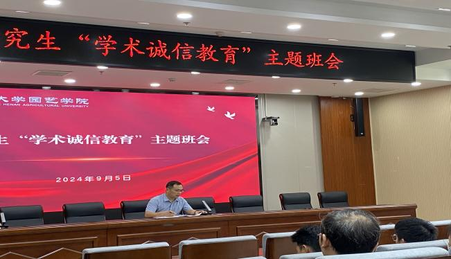 在力行楼209报告厅成功举办了以“学术诚信教育”为主题的研究生班会。副院长胡建斌出席会议,设施农业科学与工程系教师代表杜南山、果树系代表史江莉、茶学系代表贺巍、观赏园艺系郭鑫、蔬菜系代表刘东明、研究生辅导员王雪婷,以及全体研究生参加此次班会。