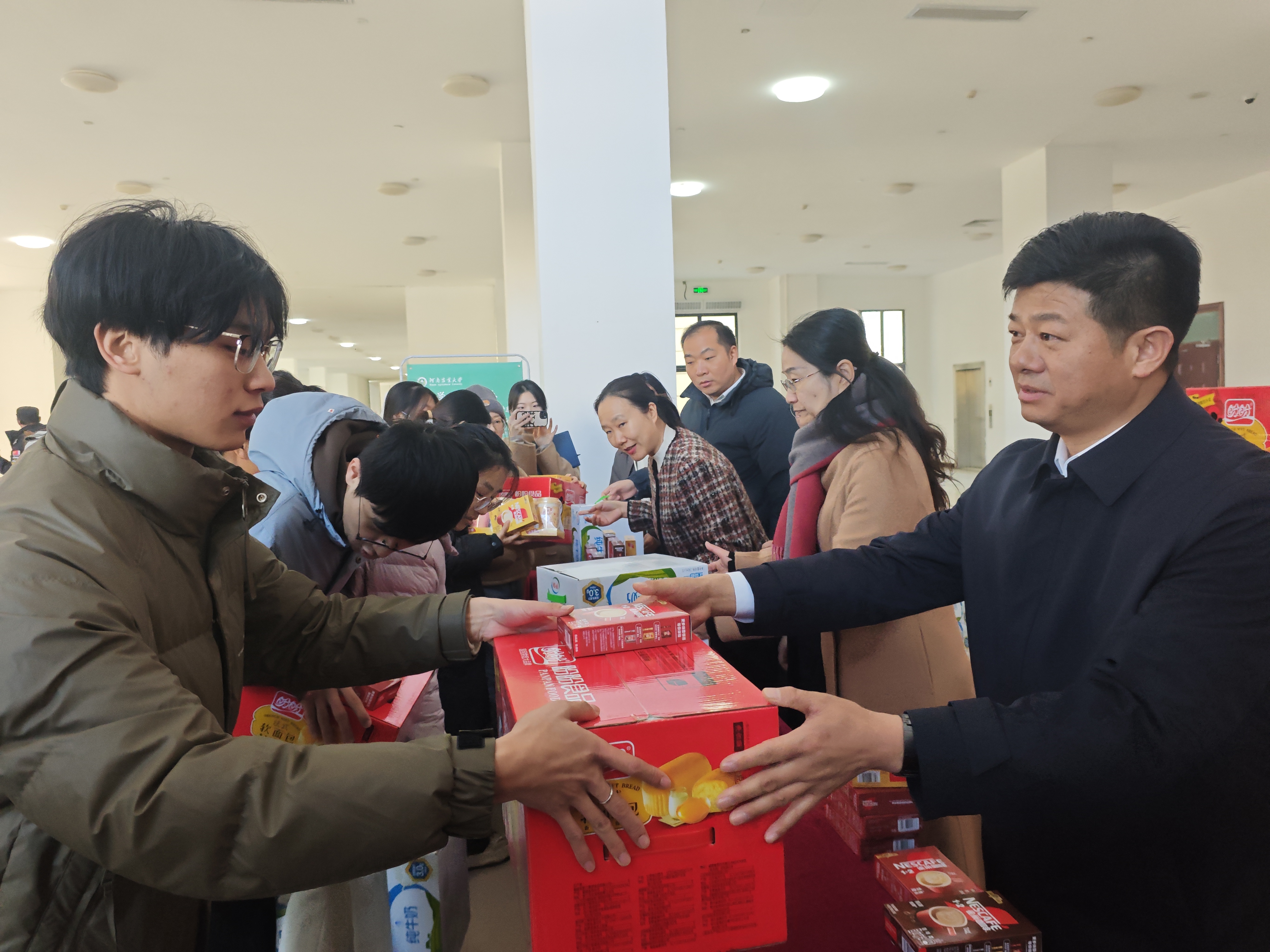 考研送温暖活动。院党委书记秦素玲、院长郑先波、院党委副书记余果、副院长陈广辉、副院长胡建斌及副院长谭彬出席,各年级辅导员及2021级学生代表共同参加。