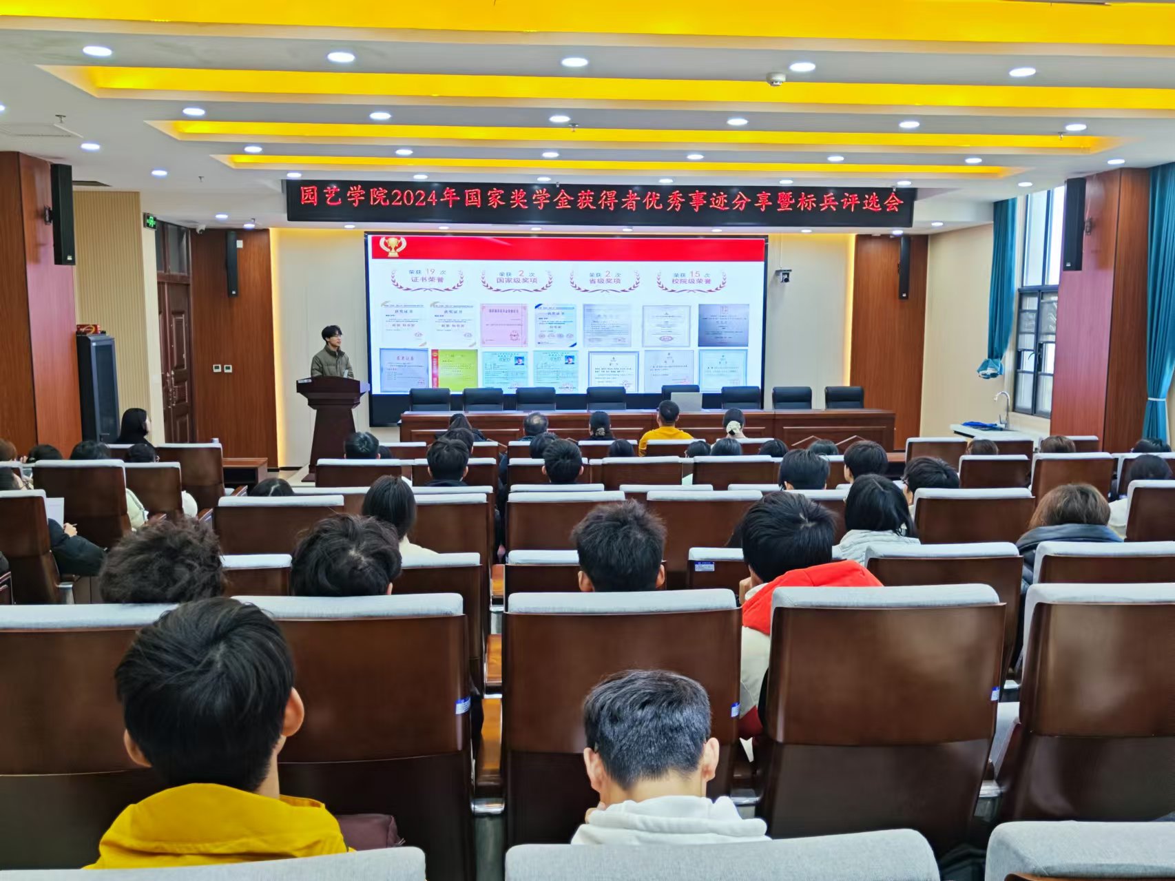 在力行楼215报告厅举办国家奖学金获得者优秀事迹分享暨标兵评选会。院党委副书记余果,团委书记冯帅及各级辅导员出席会议,国家励志奖学金获得者和班级学生代表共同参加了会议。