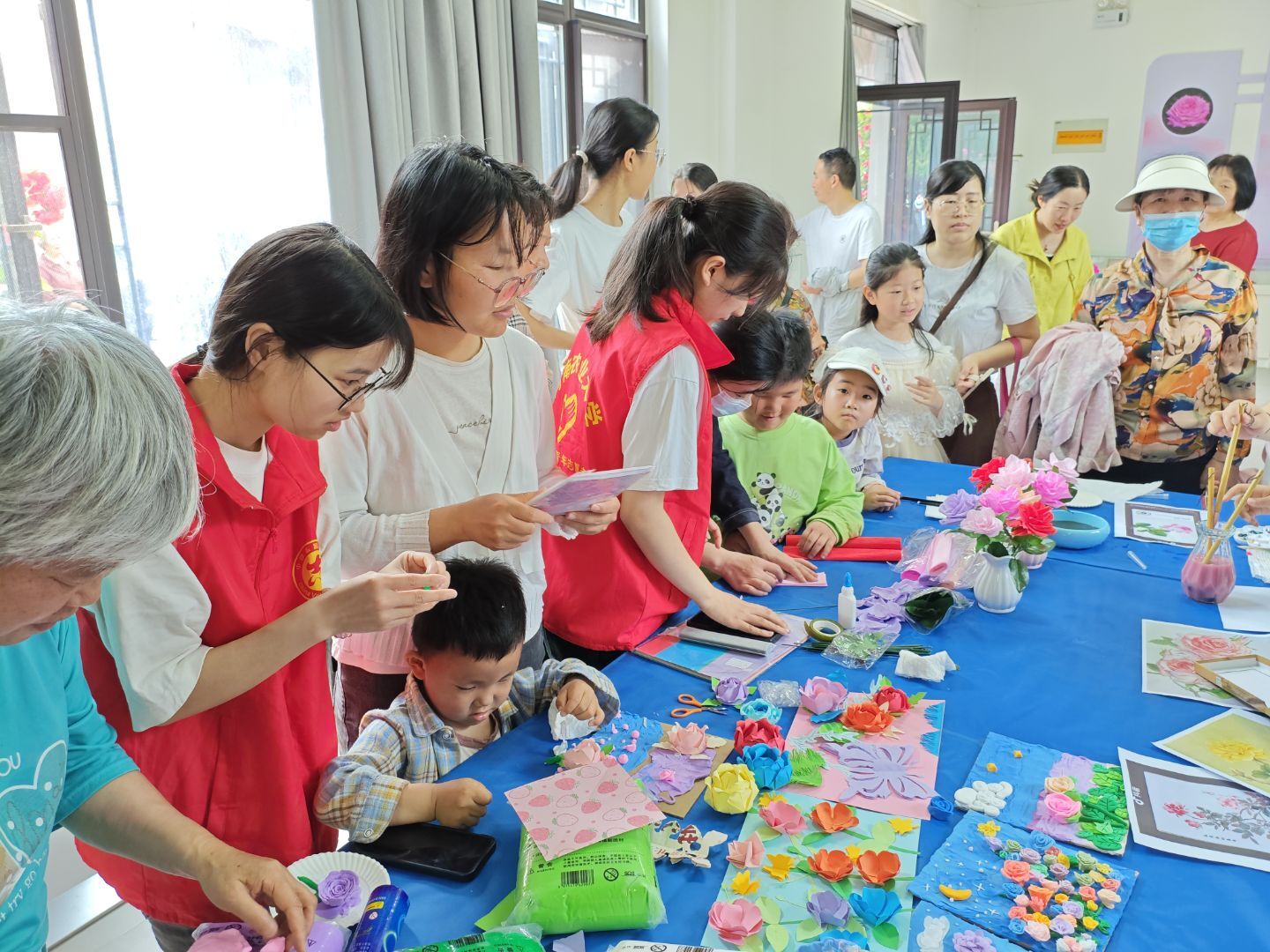 活动现场,糖心视频 志愿者协会的志愿者们充分发挥自己的专业优势和创意才能,指导感兴趣的游客利用皱纹纸、彩纸、黏土、橡皮泥等材料,精心制作出了一朵朵栩栩如生的月季花,参与者通过创作的纸艺月季或黏土月季,感受动手乐趣。这些手工制品不仅形态逼真,色彩鲜艳,更展现了志愿者们对大自然的热爱和对月季文化的深刻理解。