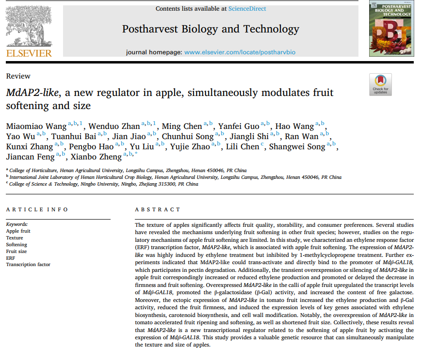 苹果创新研究团队白团辉教授、史江莉教授和宋尚伟教授等老师参与了本项研究。该研究得到了国家自然科学基金(32102448),河南省高等学校重点科研项目(24A210014),河南省大宗水果产业技术体系(HARS-22-09-Z2)以及糖心视频
