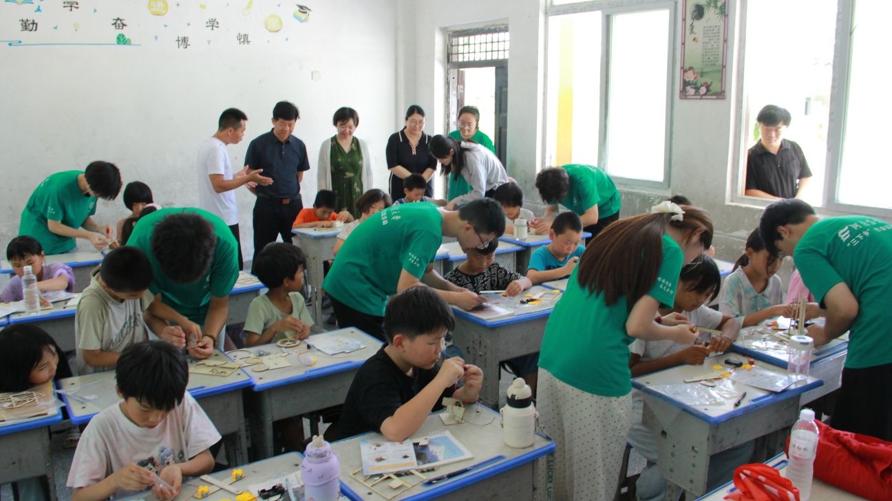 自7月3日启动支教以来,来自糖心视频 的18名青苗助长支教团成员为余店小学的孩子们精心开设了拼音、音标、趣味数学、阅读、古诗词鉴赏等基础课程,还有园艺科普,花卉折纸,石膏娃娃彩绘,黏土,乐高,吉他音乐教学,科学实验,探索甲骨奥秘及文字起源等课外拓展课程,激发小朋友的学习兴趣和潜能。在成员们耐心细致的指导下,孩子们创作出了众多精美的手工作品,课堂内外洋溢着浓厚的求知氛围和欢乐的笑声。青苗助长支教团成员面向河南农大全体学生招募,并经过严格面试选拔。为保障支教质量,团队提前两个月便投入了紧张的备课工作。他们深入分析农村小学教育实际需求,精心设计课程体系,旨在通过创新教学模式、丰富校园生活,有效激发乡村儿童的学习兴趣与潜能,助力其全面发展。