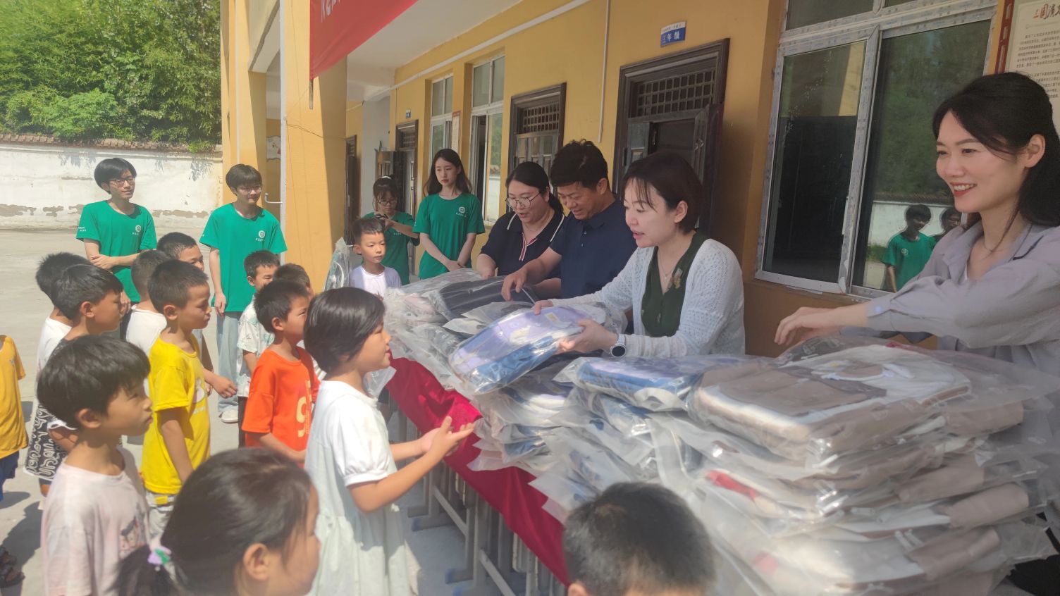 一行人共同为当地小学生们发放了崭新的书包和体育器材,助力小朋友“德智体美劳”全面发展,同时也慰问了支教团的全体学生。