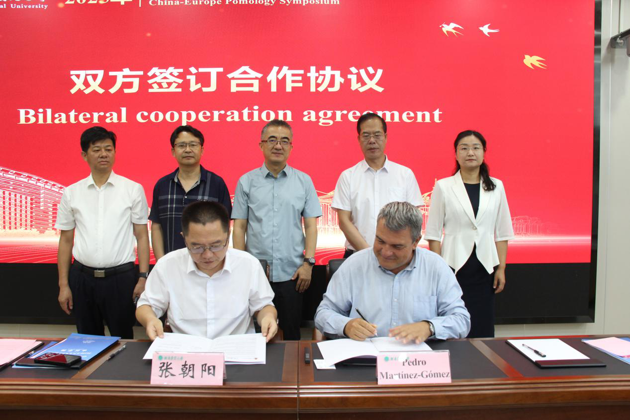积极拓展国际学术交流与合作的重要体现。会议不仅为我院师生提供了与国际顶尖果树科学家面对面交流学习的宝贵机会,显著提升了我院在果树科学领域的国际知名度和学术影响力,更通过签署实质性合作协议,进一步巩固和拓展了与欧洲顶尖果树研究机构的战略合作关系。这将有力推动我院在果树种质创新、分子育种、品质调控、绿色生产等方向的深入研究,加速科研成果转化,为服务国家乡村振兴战略、推动区域果树产业高质量发展以及我校“双一流”建设和园艺学科内涵式发展注入新的强劲动力。(撰文/刘天嵛、申亚文 审核/余果 发布/徐宛玉)