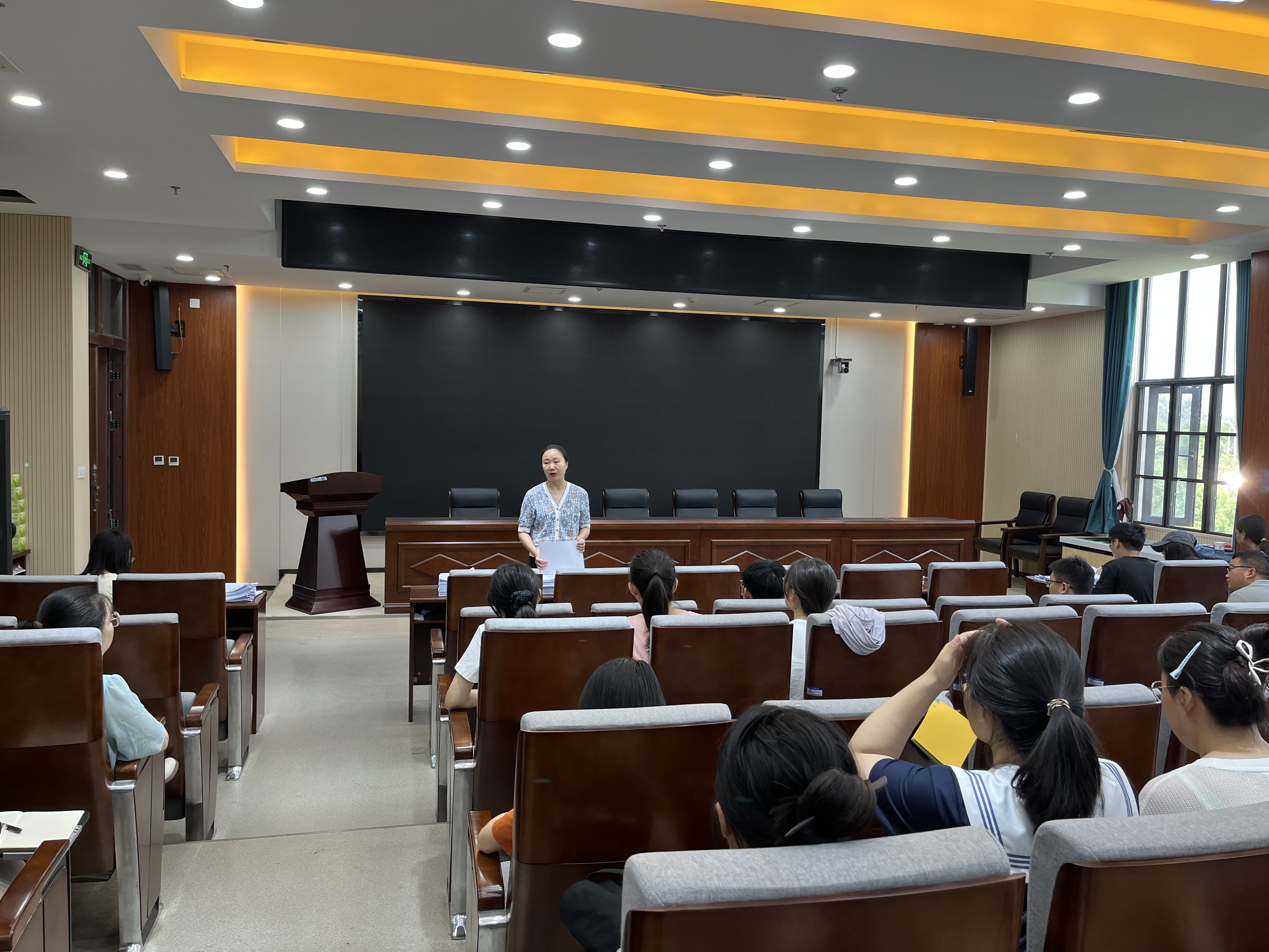 教学副院长谭彬主持,各答辩小组秘书、2021级各班班委参加。