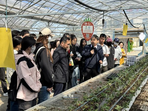 上午,同学们在河南凤彩农业发展有限公司参观了草莓苗的脱毒、组培苗繁育、立体高架草莓栽培等栽培技术,同学们深刻认识到草莓种苗的来之不易,并与企业人员对“如何缩短草莓育种周期”“商业化品种推广痛点”等问题展开讨论,深刻体会到生物技术从实验室到田间地头的转化挑战。