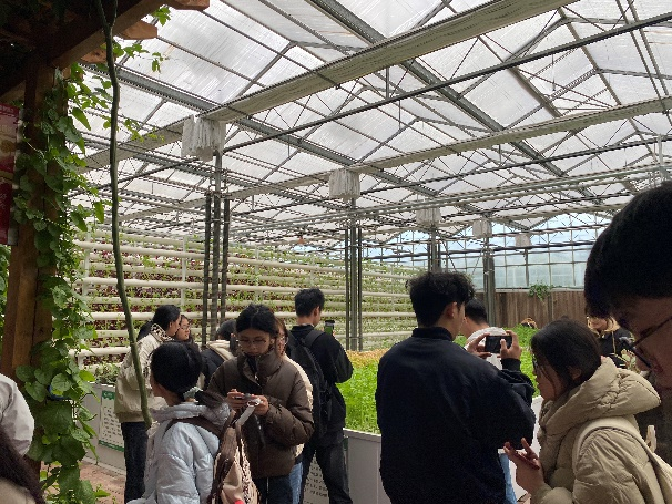 随后,学生们参观了安冠智慧农业产业园,亲身体验了实体智慧农业的魅力。通过园区的介绍,他们了解了科技在农业生产中的应用,更激发了学生对农业科技创新的浓厚兴趣。课程组的老师们结合园区的实际情况,从功能分区、道路规划、景观设计到智能化设施的布局与运用等方面,进行了深入浅出的讲解。学生们听得津津有味,不时提出自己的见解和疑问,现场气氛热烈而活跃。
