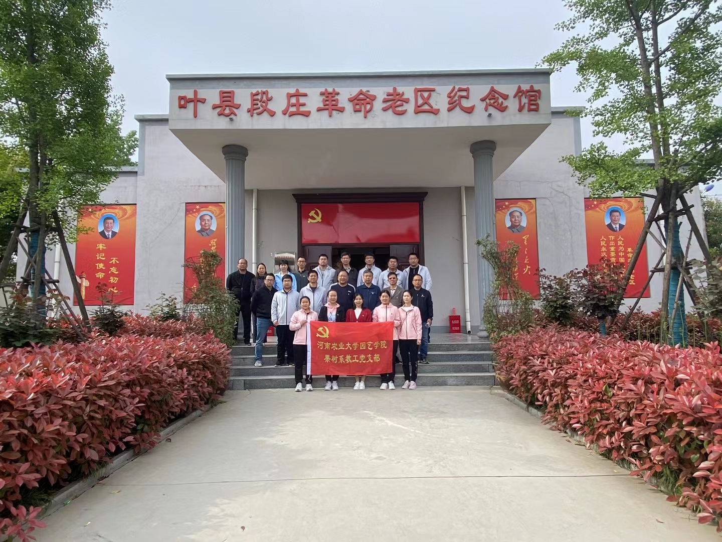 果树系教工党员首先参观了段庄村革命老区红色教育基地,深入了解了段庄村老一代共产党人的英勇事迹,在党支部书记谭彬的带领下重温了入党誓词,重温峥嵘岁月,传承红色基因,激发使命担当。