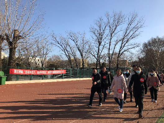 分工会在学院党政领导的支持下,组织了“走在阳光下,健康你我他”教职工迎新春健步走活动,学院全体教职工参加了此次活动。