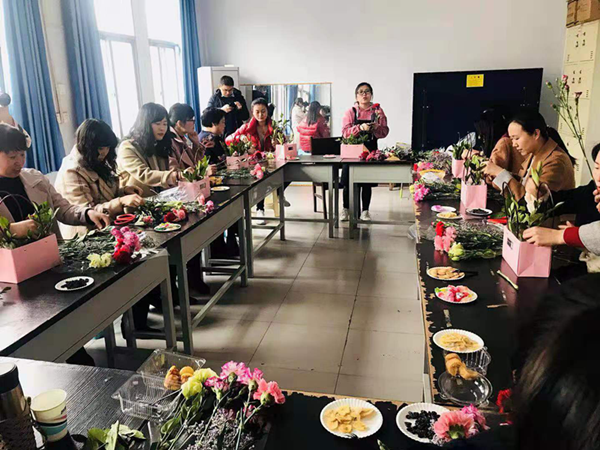 分工会以庆祝“三八”国际劳动妇女节为契机,于3月8日下午在院教职工活动室举行了以插花为主题的“花艺沙龙”活动。下午三点半,我院女教工汇聚一堂,听取花艺老师介绍花的不同含义,讲解插花技巧、鲜花搭配等。在花艺老师的指导下,大家边看、边学、边做,按照“高低错落、疏密有致”的造型要求,将花卉材料组合或搭配,一个多小时后,一件件错落有致、造型优雅的花艺作品美丽呈现。一张张笑脸在花朵的映衬下格外美丽,欢声笑语充满整个场地。大家纷纷表示,这样的花艺活动,不仅让大家感受到了大自然的美丽,还锻炼了我们的动手能力,领略到插花艺术的独特魅力,赢得了女教工们的一致称赞。(文/谭彬 核/李琼)