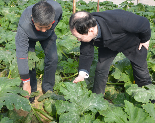 扶沟蔬菜研究院的棚内棚外皆是一片葱绿,领导们沿着菜地间的小路前行,看着玲琅满目、多姿多彩的果菜园子,在赞叹各种竞相生长,丰硕诱人的瓜菜的同时,也对我院基地高效管理利用和科研人员潜心钻研学术的精神给予了充分的肯定和表扬。