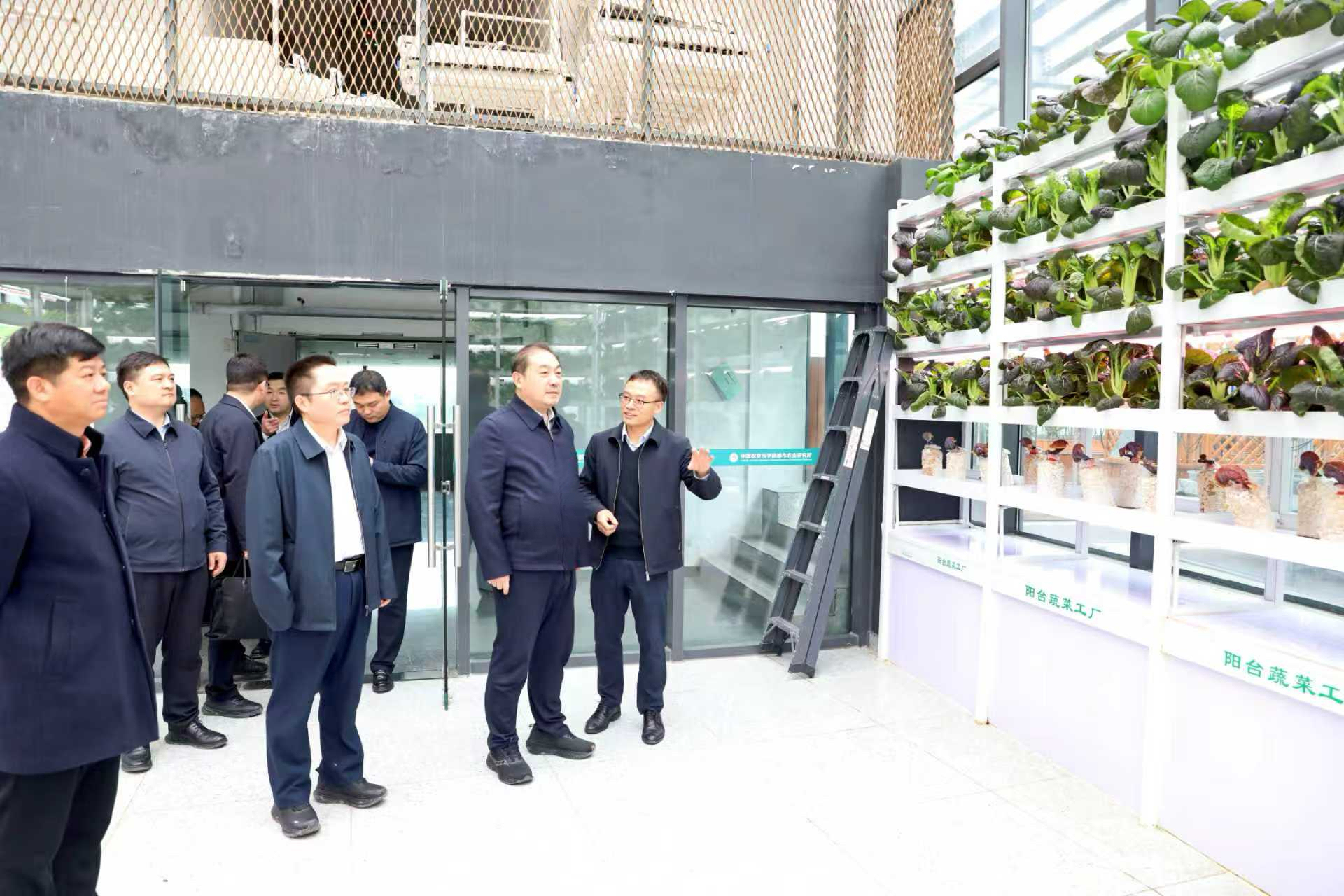 在中国农业科学院都市农业研究所,岳杰勇一行详细考察了研究所在生物制造、育种加代、垂直农业及屋顶农业等都市农业领域的多个创新示范场景。都市农业研究所首席科学家王森现场介绍了都市农业学科建设、科研创新与技术应用等情况。调研中,双方围绕垂直植物工厂、多年生作物育种加速、功能性食品开发、未来农业发展趋势以及“一带一路”农业合作等问题深入探讨,并就校所双方的合作共建事宜交换了意见。