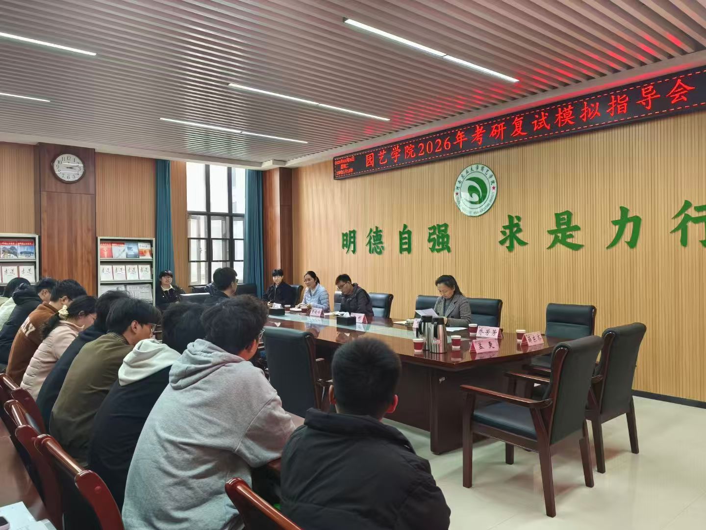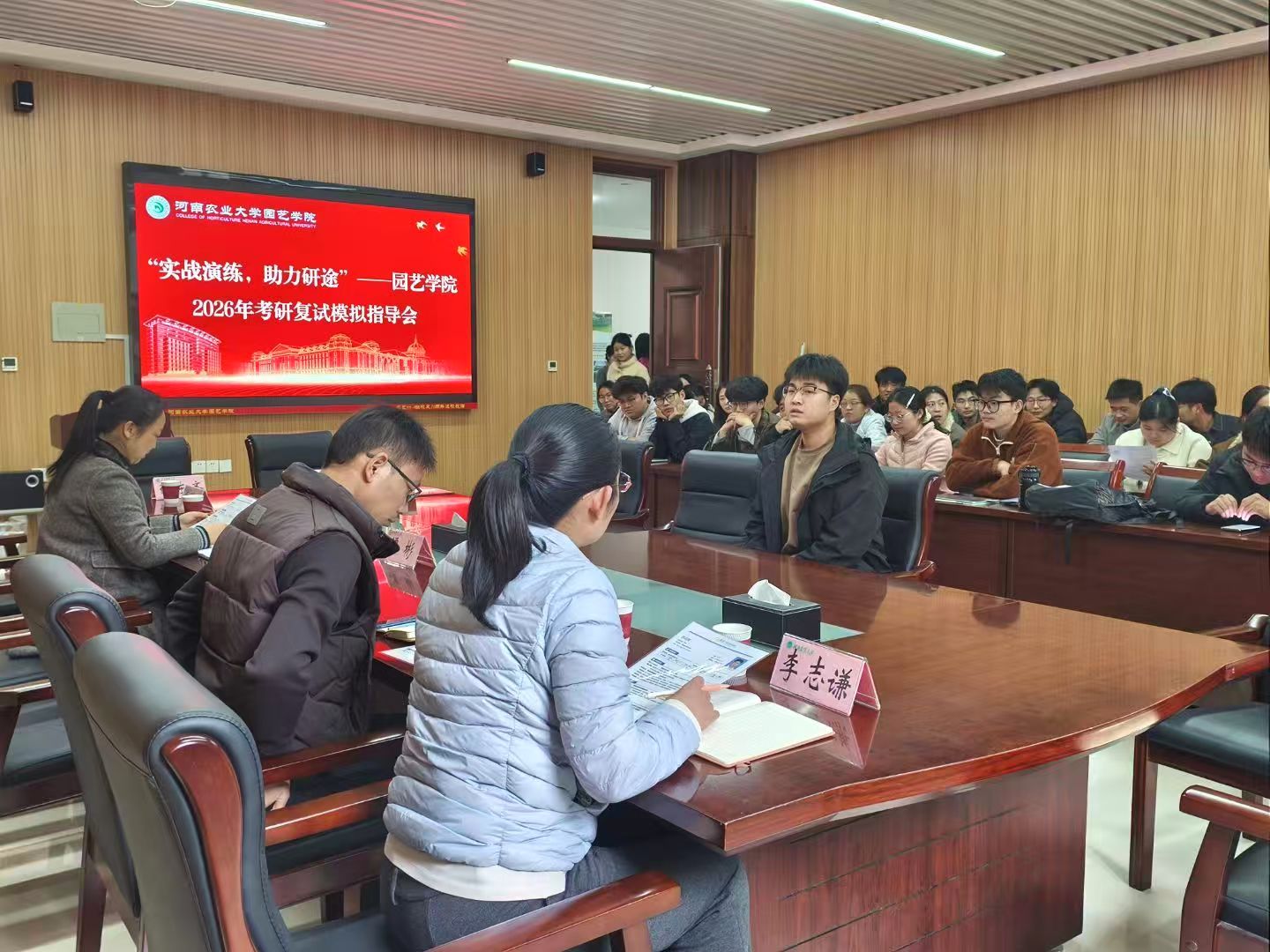精心组织开展“实战演练,助力研途”为主题的考研复试模拟指导会。副院长谭彬出席会议,茶学系主任贺巍、观赏园艺系副主任薛东齐、果树系李志谦和蔬菜系豆峻岭、孟更担任复试评委,2022级辅导员乔芳芳主持会议,2026届考研学子广泛参与。