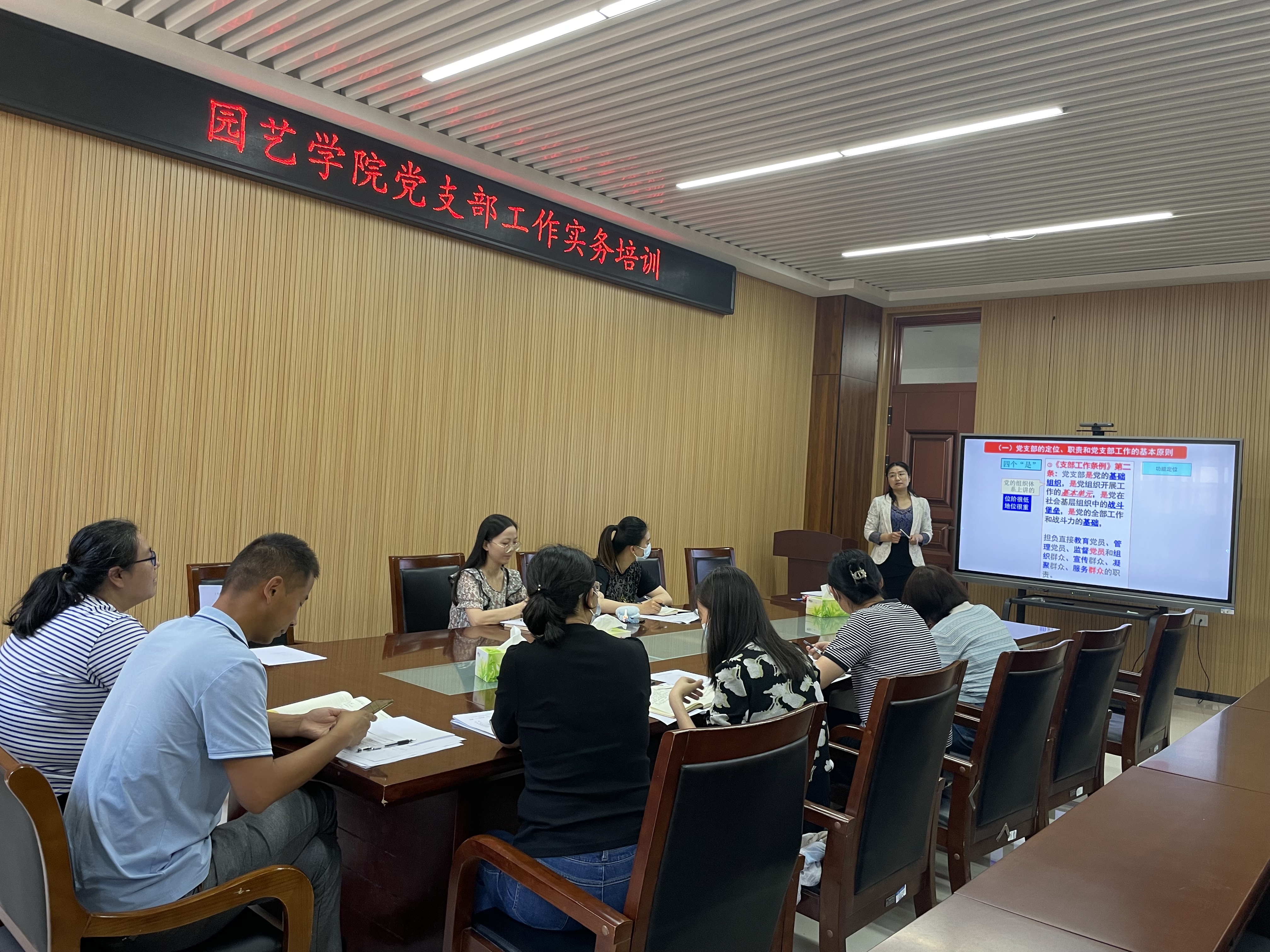 党委在第二实验楼北215会议室进行党支部工作实务培训,邀请院党委书记秦素玲作专题辅导报告,全体教职工党支部书记、支部委员参加此次培训。