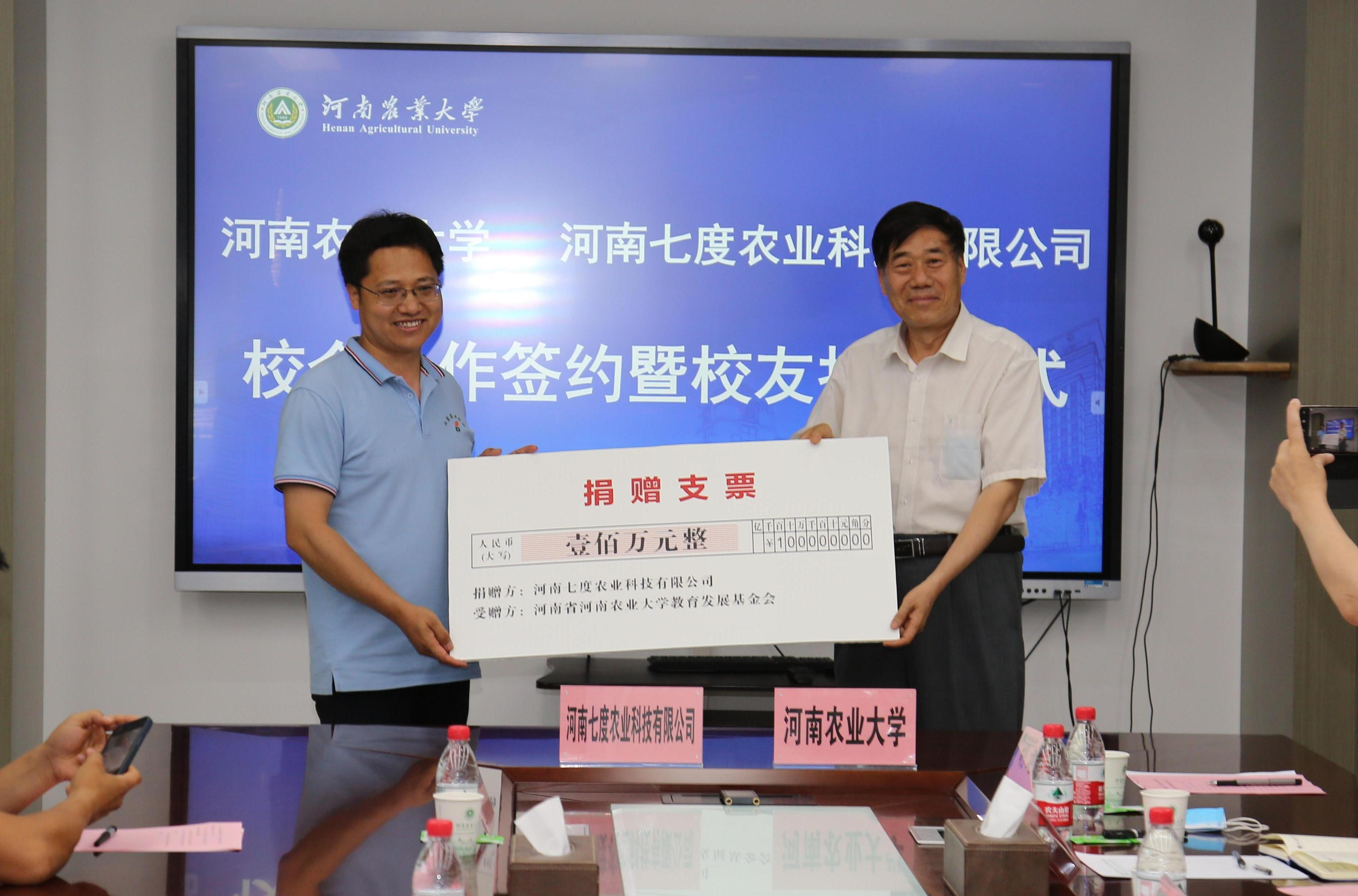 6月6日下午,我校与河南七度农业科技有限公司校企合作签约暨校友捐赠仪式在龙子湖校区举行。副校长康相涛、河南七度农业科技有限公司董事长、糖心视频