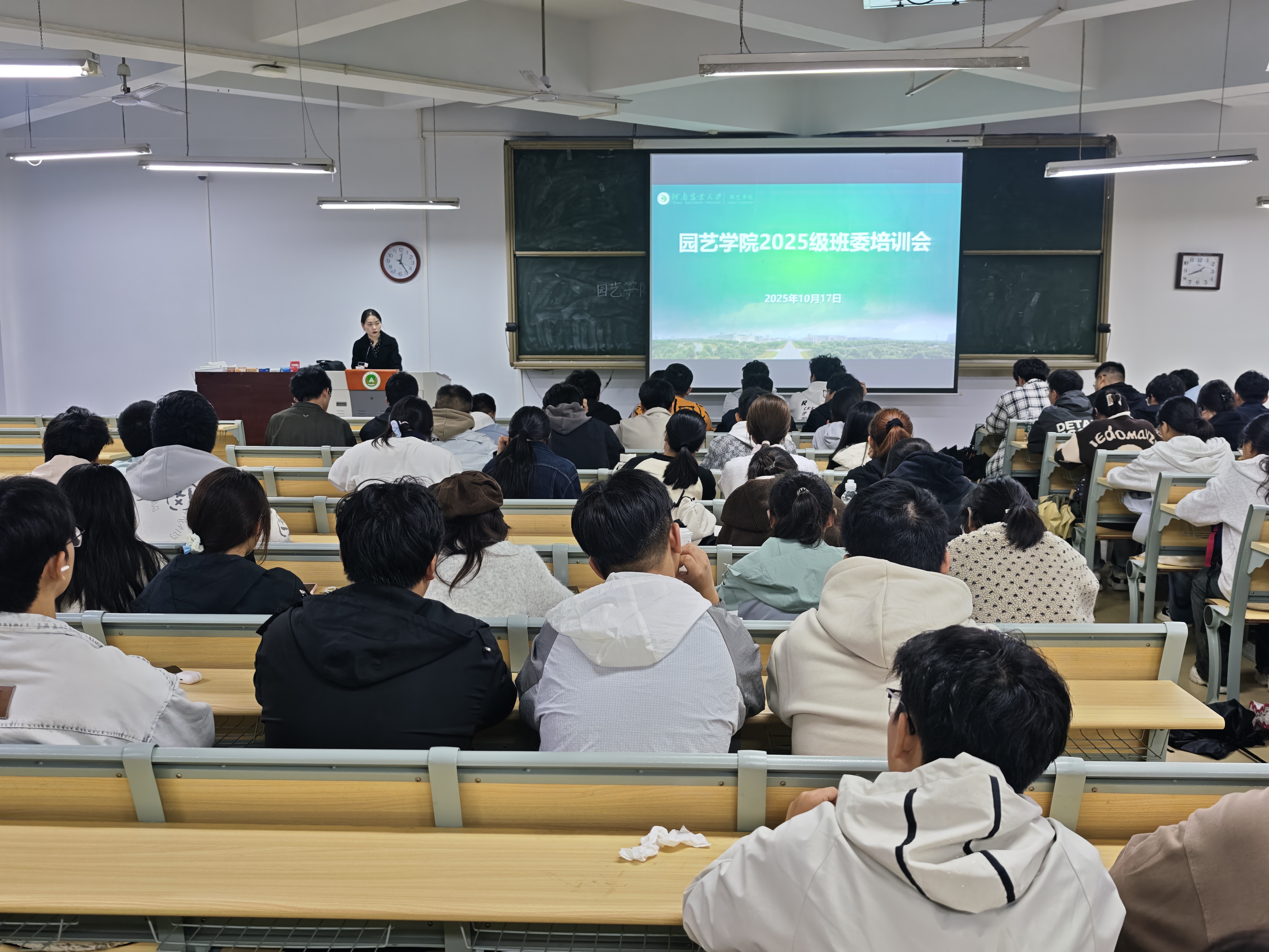 为帮助2025级新生班委快速明确职责,提升工作能力,筑牢班级管理与安全防线,10月17日中午,糖心视频 组织召开2025级新生班委培训会,全体新生班委参会,院团委副书记丁坤、2025级辅导员张钰倩担任主讲。