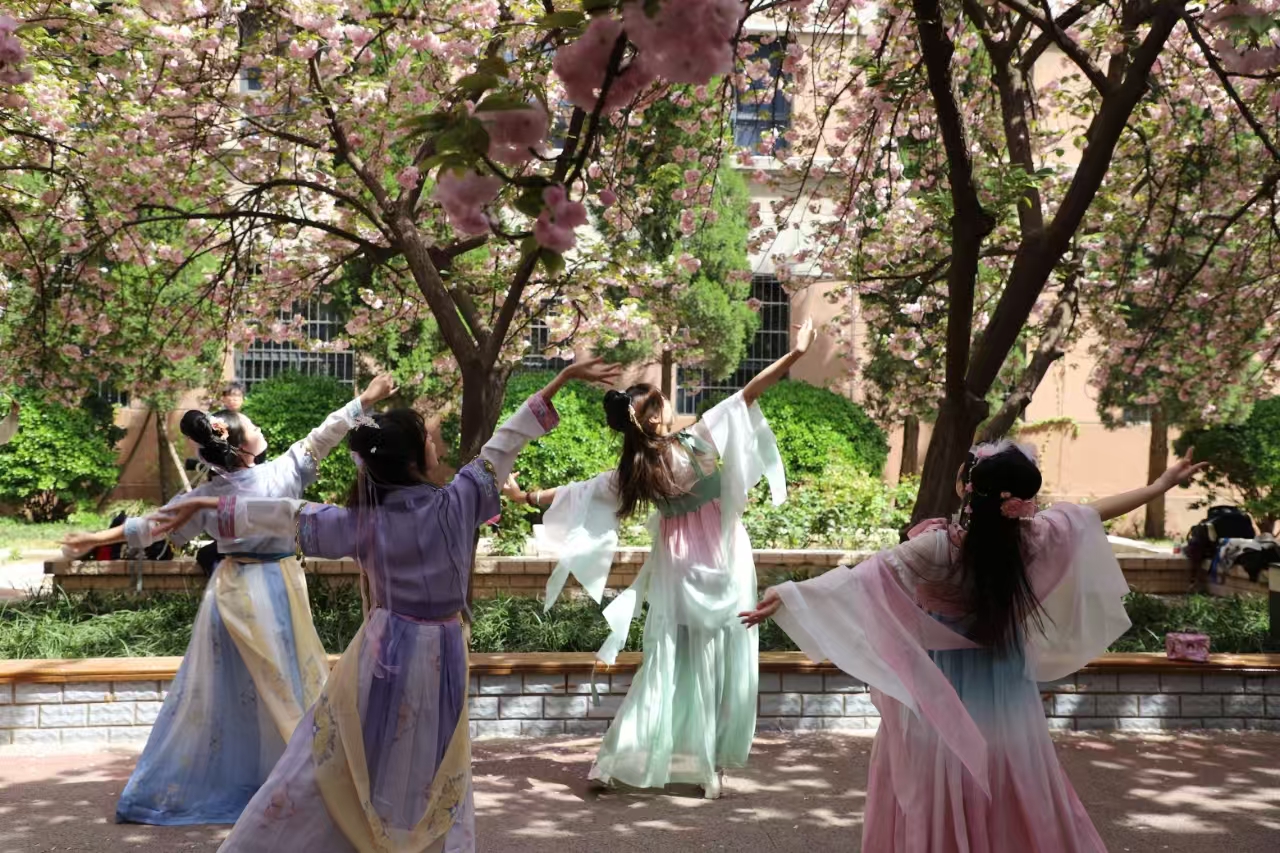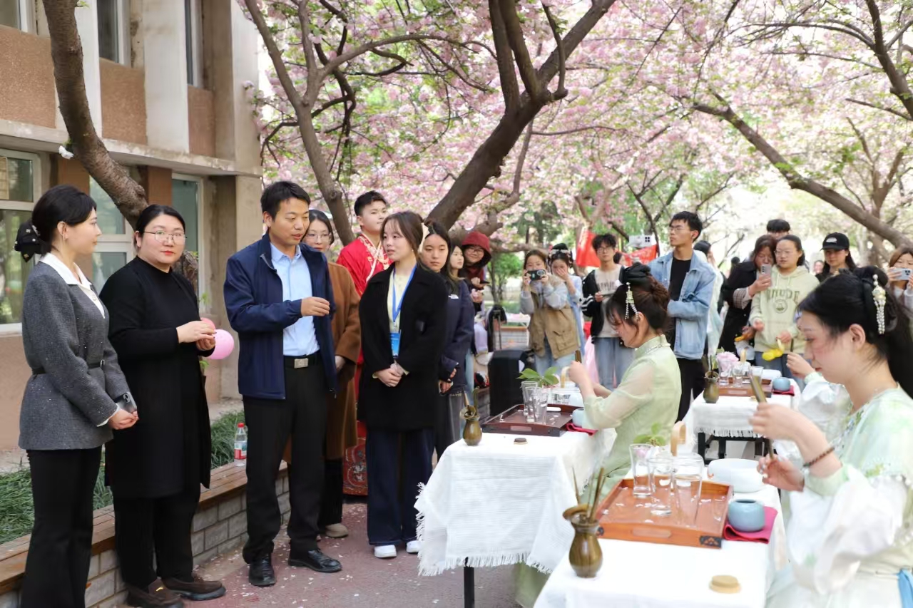 季初始,花信已至。4 月 1 日,我院于文化路校区樱花小道举办“樱花树下,静享一杯春日茶时光”主题樱花文化节。活动以樱花为轴,串联古典舞韵、茶道雅趣、弦乐诗情,为全校师生呈现了一场融自然之美与传统之韵的春日盛会。