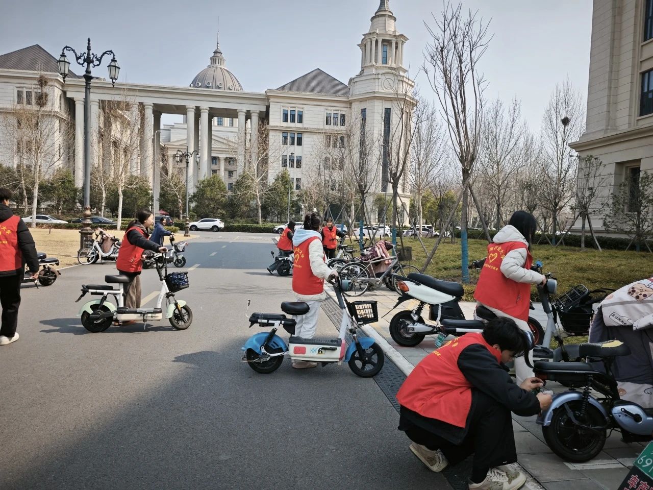 志愿者分工协作,按照“车头同向,摆放整齐”的标准,将凌乱在人行道和力行楼门口的车辆逐一摆至停车区域,避免堵塞引发安全隐患,维护校园整洁美观,志愿者们也希望这次活动能带动更多人养成文明停车、随手摆正的好习惯。