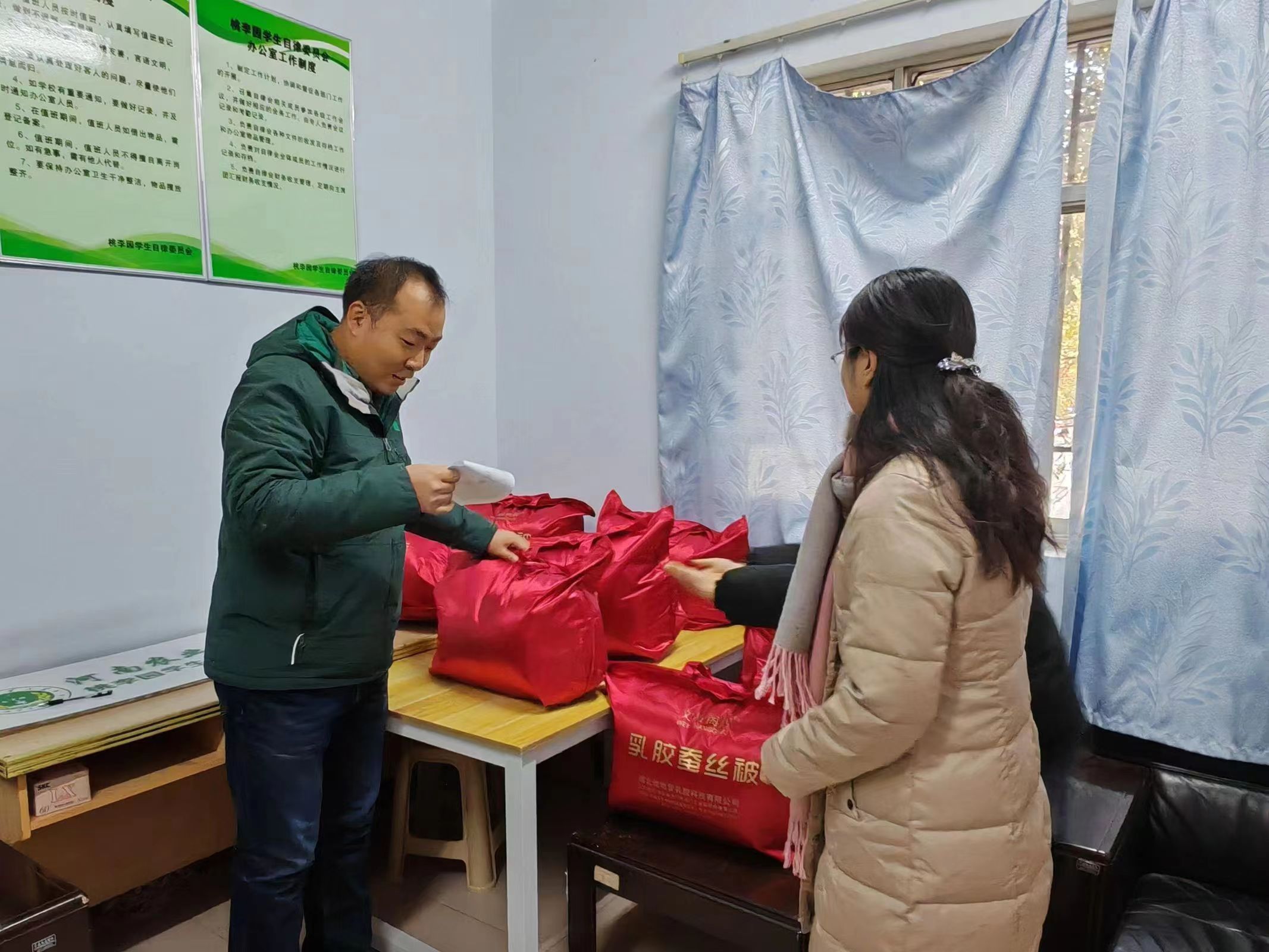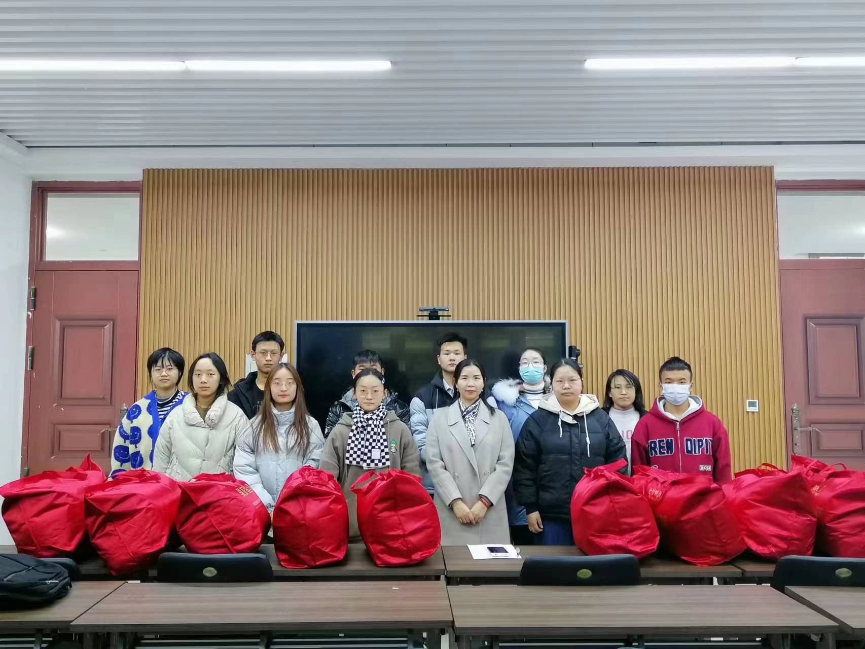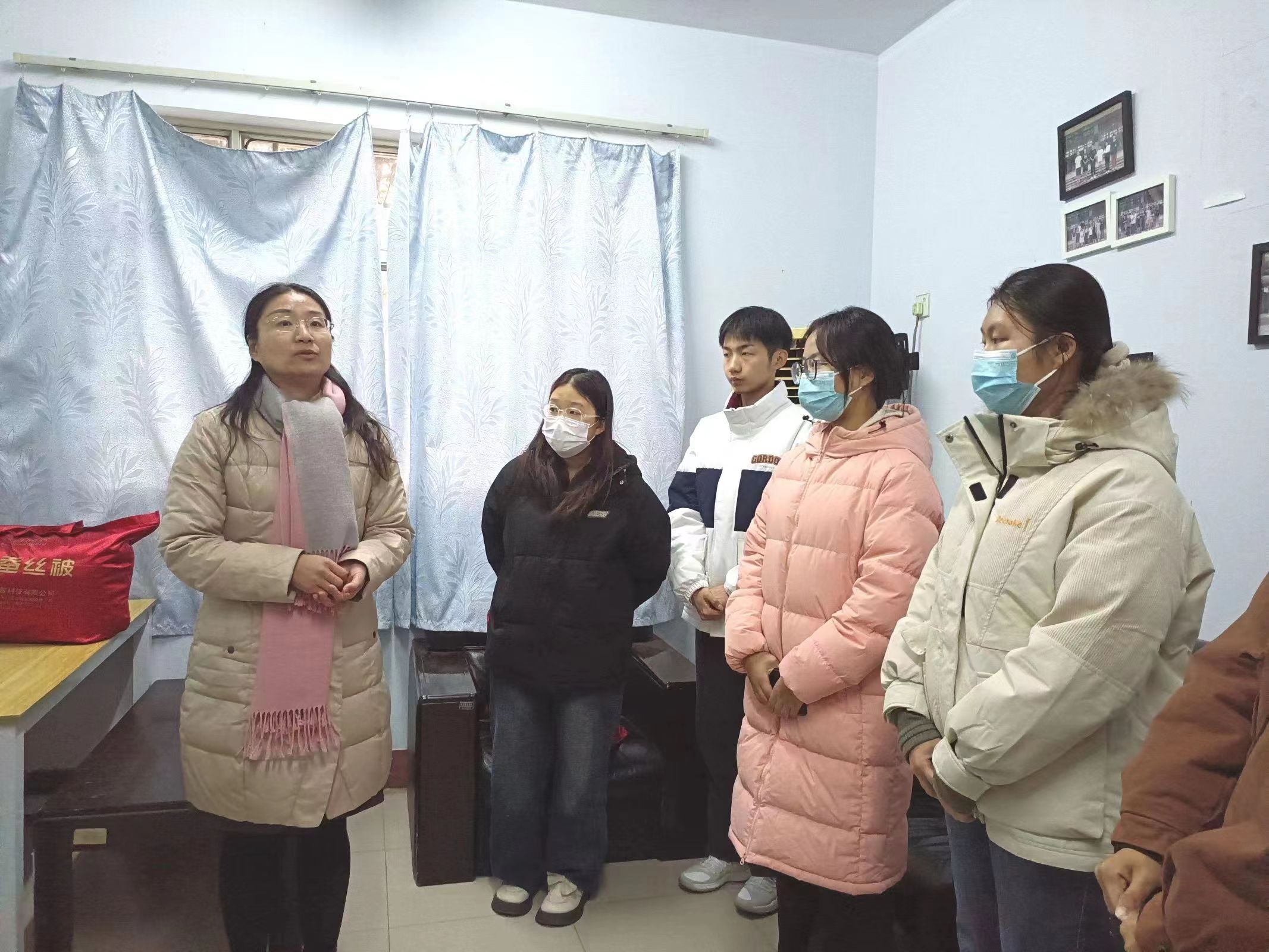 活动开始,参加本次活动的同学分别做了自我介绍,并讲述了自己进校以来的感受,表达了对学院重视学生需求,高效解决学生实际生活问题的感动和激动心情。随后,秦书记和毛书记与学生们进行了沟通交流,耐心询问了解同学们的生活状况以及对学校的适应情况,就同学们遇到的困难提出有效的解决方法,同时也暖心提醒同学们要注意添衣加被、防寒保暖,希望大家有困难时主动和辅导员沟通、向学院寻求帮助。活动最后,老师们代表学院将饱含情谊的棉被送到各位同学手中,并鼓励同学们以乐观的心态面对眼前的困难,保持良好的学习心态,努力成为有理想、敢担当、能吃苦、肯奋斗的新时代好青年。