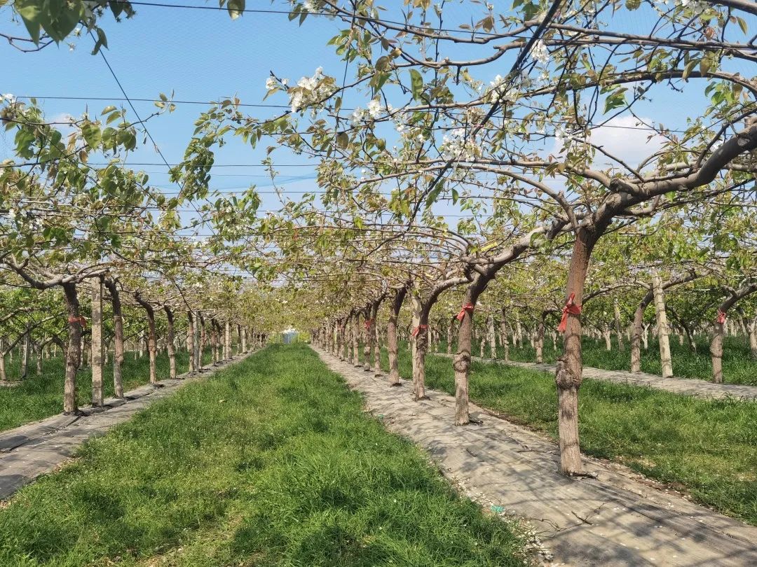 随后,在老师的带领下同学们前往国家梨产业技术体系郑州综合试验站,并由试验站郭鹏老师为大家讲解了我国梨产业技术体系的基本情况、建园过程、栽培模式等相关内容。在梨示范园区内,同学们近距离观察了连体式、省力化、“V”字形等不同现代化栽培模式,还详细讲述了果园生草、肥水一体化、黑地膜和地布、防霜机、减灾技术等现代化栽培技术。