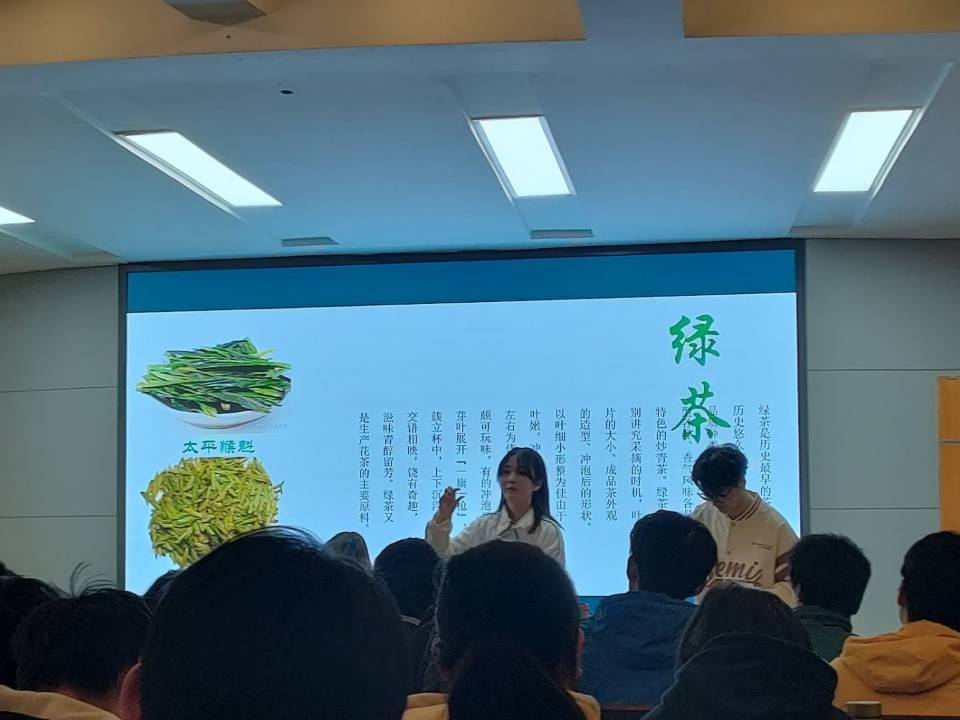 茶轩社社团负责人20级茶学2班的程江担任本次活动的主讲人,为参加茶会活动的成员,从加工和不同制作工艺的角度,依次讲解了“六大茶类”的区分方法,各席主随着讲解员的介绍,依次为同学们展示泡茶的方法步骤,并介绍不同茶类的品鉴方法。茶会活动还设置了有奖问答环节,通过大家回答主持人提出与茶有关的小知识,不断调动了同学们的积极性,更加激发了同学们对于茶以及茶文化的浓厚兴趣。