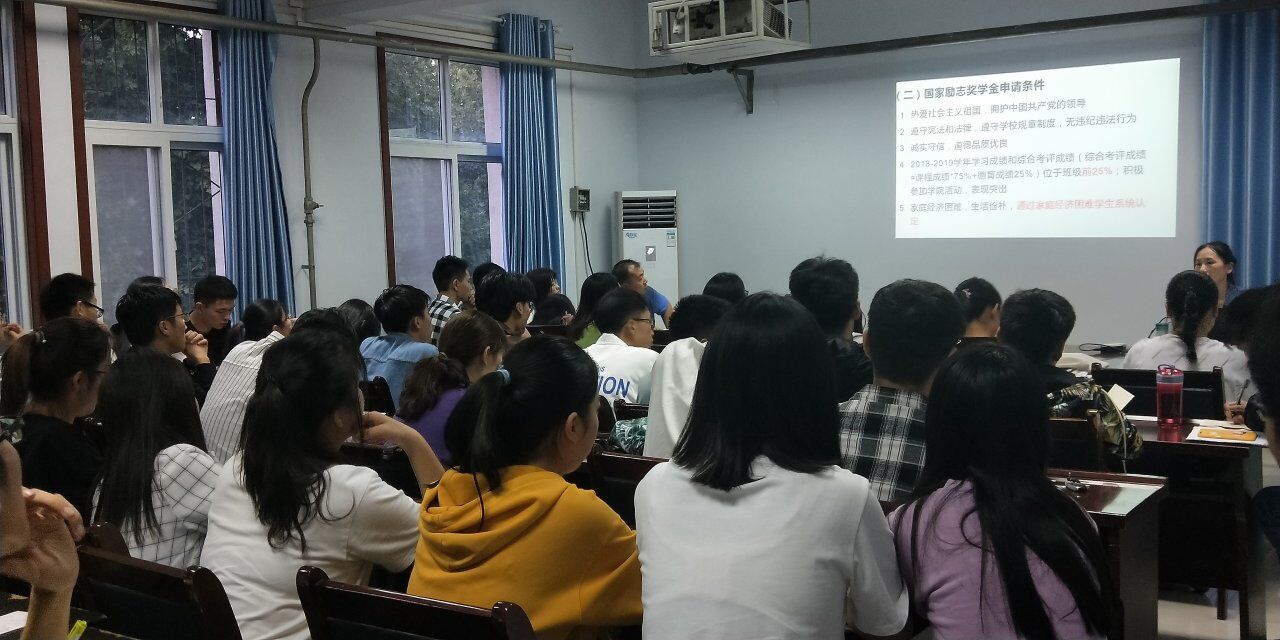 会上,陈桃老师首先向大家宣读了《糖心视频 关于做好2019年本科生国家奖助学金评审发放工作的通知》,介绍了国家奖助学金的评选原则、评选范围和评选条件,其次详细讲述了奖助学金的申请条件、名额分配、评选要求及日常工作安排,并着重强调各班班长支书要切实履行公平公正公开的原则进行班级评定工作。期间,侯亚兵书记