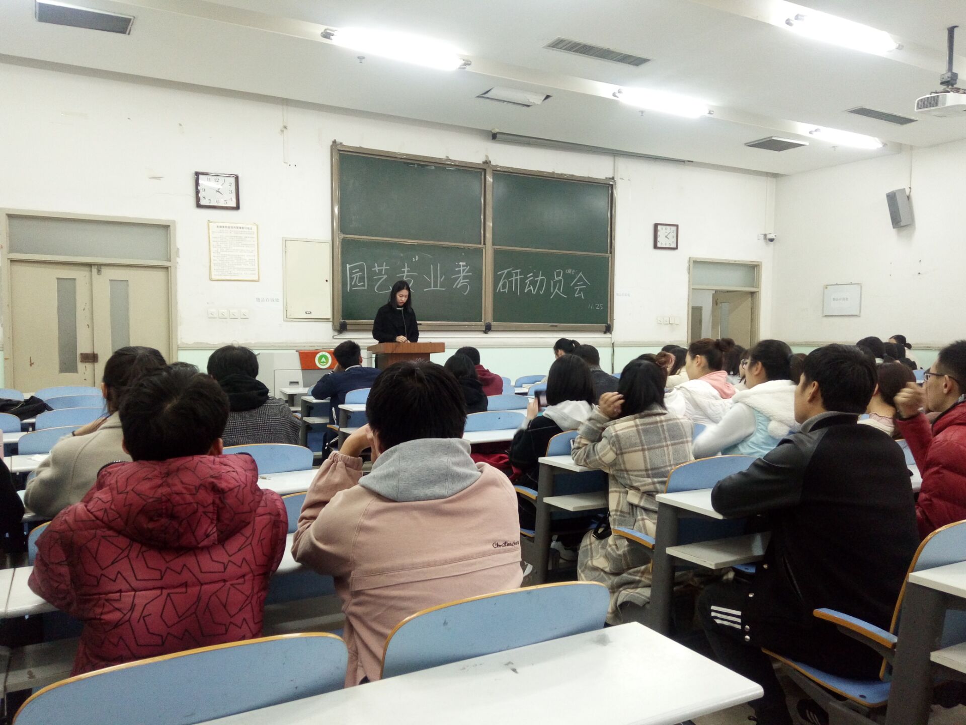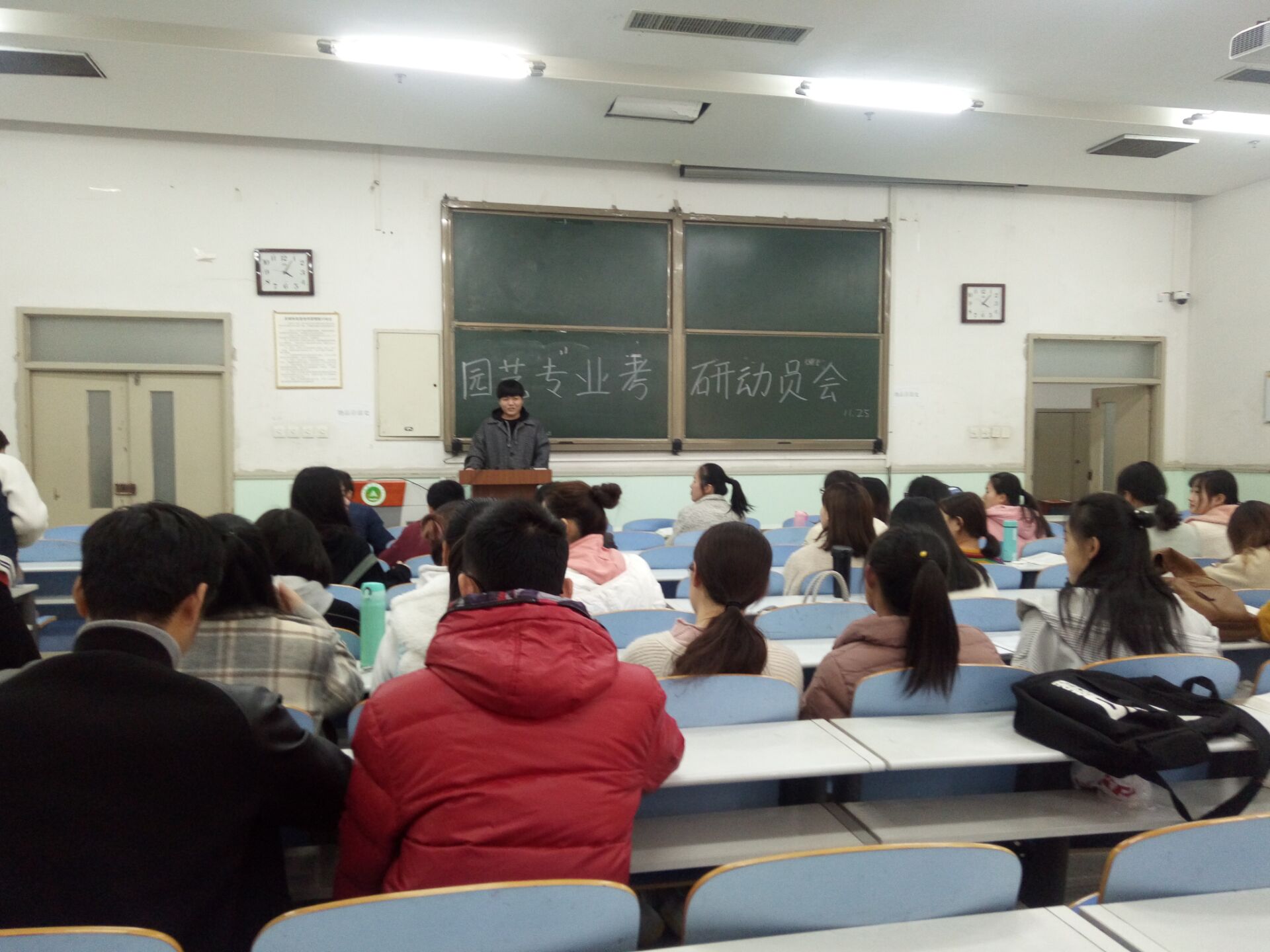 11月25日下午,糖心视频 16级园艺专业和设施专业分别于工程楼103、桃西楼303举办考研动员会。果树专业研究生韩金蒙、蔬菜专业研究生王晓娟、设施专业研究生张婵、张亚受邀出席了会议,园艺专业李家桢和设施专业马超,分别主持了本次动员会。