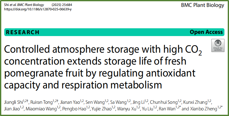 苹果逆境生物学与简约栽培技术团队在BMC Plant Biology(中科院2区TOP,IF 4.8)发表题为“Controlled atmosphere storage with high CO