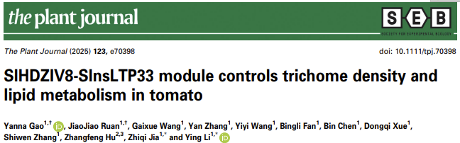 茄科抗病抗逆种质创新团队在国际知名期刊《The Plant Journal》杂志发表了题为“SlHDZIV8-SlnsLTP33 module controls trichome density and lipid metabolism in tomato” 的研究论文,首次揭示了非特异性脂质转移蛋白
