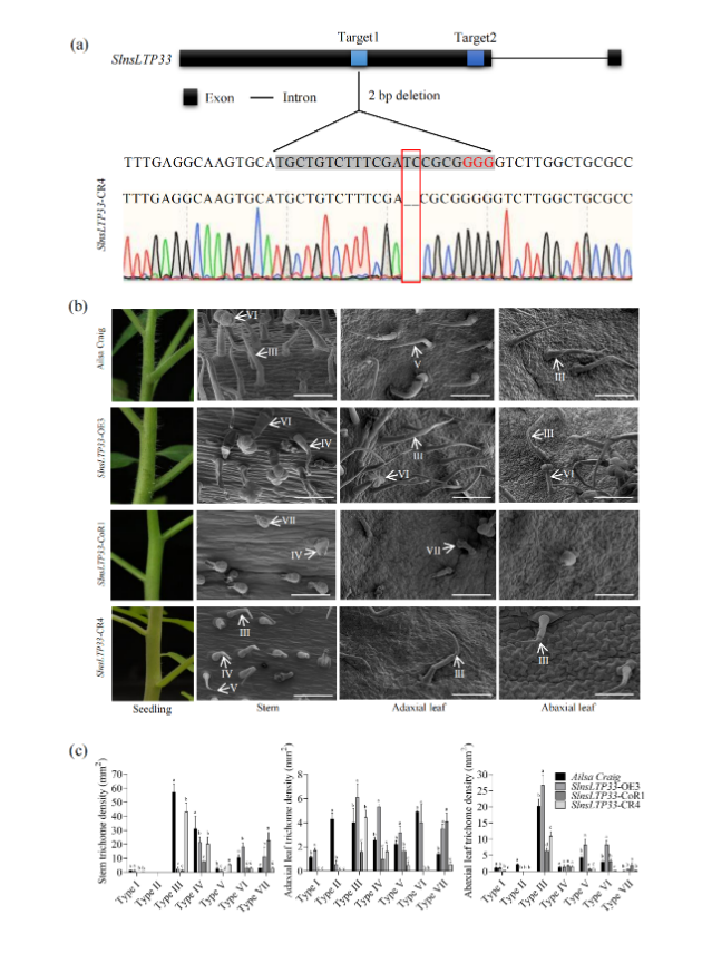 表皮毛作为植物与环境交互的第一道物理屏障,在抵御虫害、紫外线辐射及极端气候中发挥关键作用。番茄作为全球重要的经济作物,其表皮毛密度直接影响抗虫性能。本研究发现,HD-Zip IV家族转录因子SlHDZIV8通过直接结合脂质转运蛋白基因