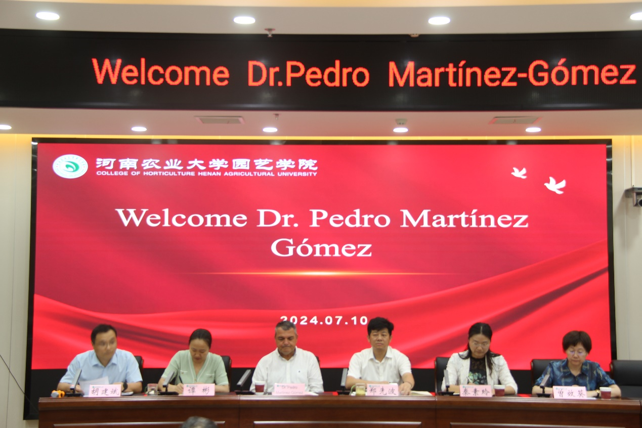 和河南省园艺植物生物学国际联合实验室主办的2024年度河南省园艺植物生物学国际联合实验室果树学术研讨会在力行楼北209报告厅举行。西班牙国家研究委员会(CSIC)的Pedro Martínez-Gómez教授应邀来校开展学术交流。学校国际交流合作处副处长曾效葵,学院党委书记秦素玲、院长郑先波、副院长胡建斌和副院长谭彬,及相关的专家学者出席了本次学术研讨会。研讨会由副院长胡建斌主持,糖心视频