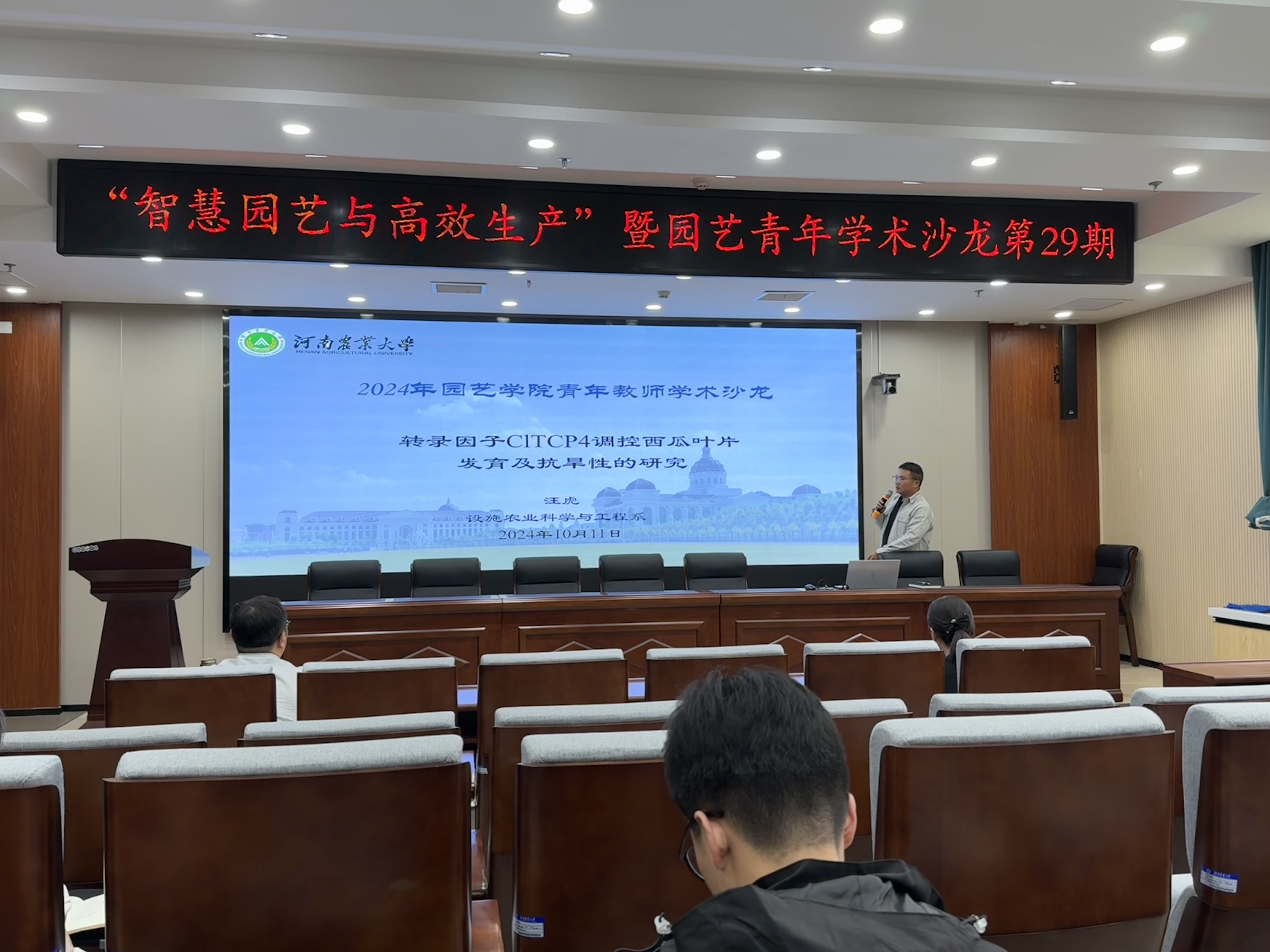 2024年10月11日下午, 2024年“园艺青年学术沙龙”(第29期)在龙子湖校区力行楼北209学术报告厅成功举办,青年教师郝鹏博、李翔、汪虎、苏会、蒋丽微分别作学术报告。报告会由科研秘书白团辉教授主持,各学科方向带头人、教师及研究生代表参加了本期学术沙龙。
