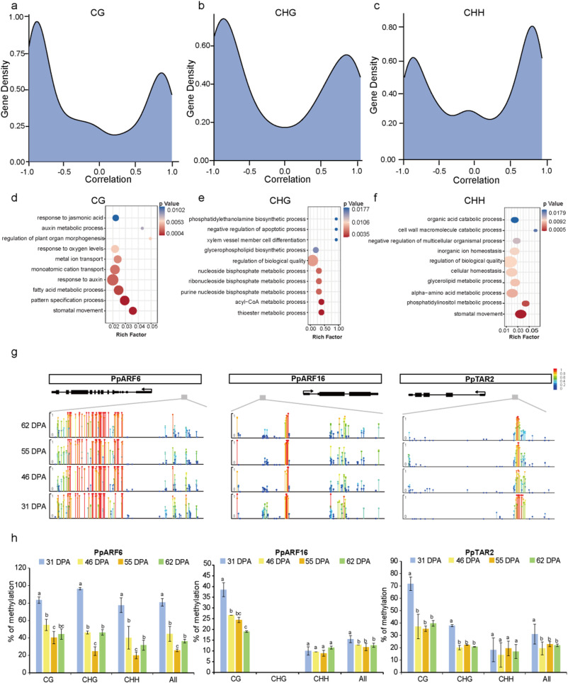 图1.‘中油4号’桃果实膨大过程中生长素代谢基因DNA甲基化水平的变化