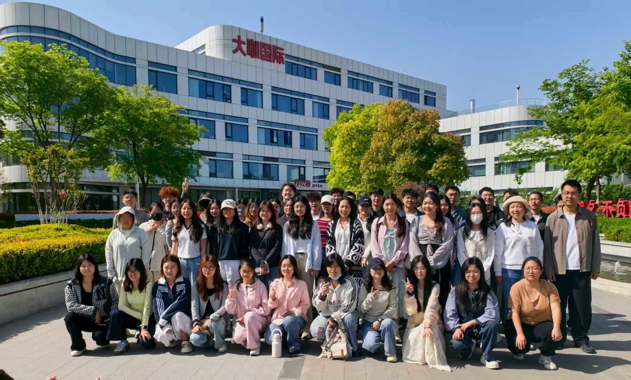 在企业工作人员的引导下,师生们先后参观了企业展厅与生产基地,直观了解企业产业布局。据悉,大咖国际已建成河南、安徽等五大生产基地,配备70余条智能化生产线,年综合产能达170余万吨,构建起 “ 全球化原料采购+标准化生产+数字化管控 ” 的完整产业链体系,有效保障全球门店原料供应稳定。