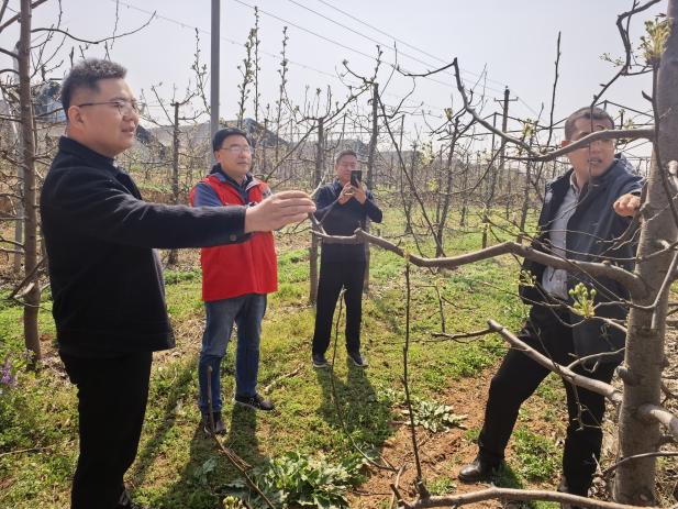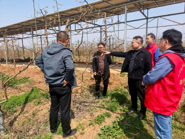 果树系教师、河南省科技副总郝鹏博,带领优秀毕业生现任职于果园管家总经理赵乾、华圣农业武凯凯,前往三门峡市湖滨区心怡水果家庭种植农场开展春季果园综合管理技术指导服务,为园区生产送技术、解难题、提信心。